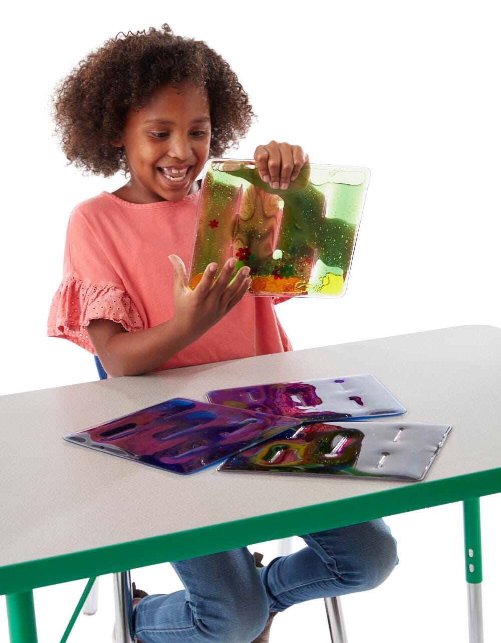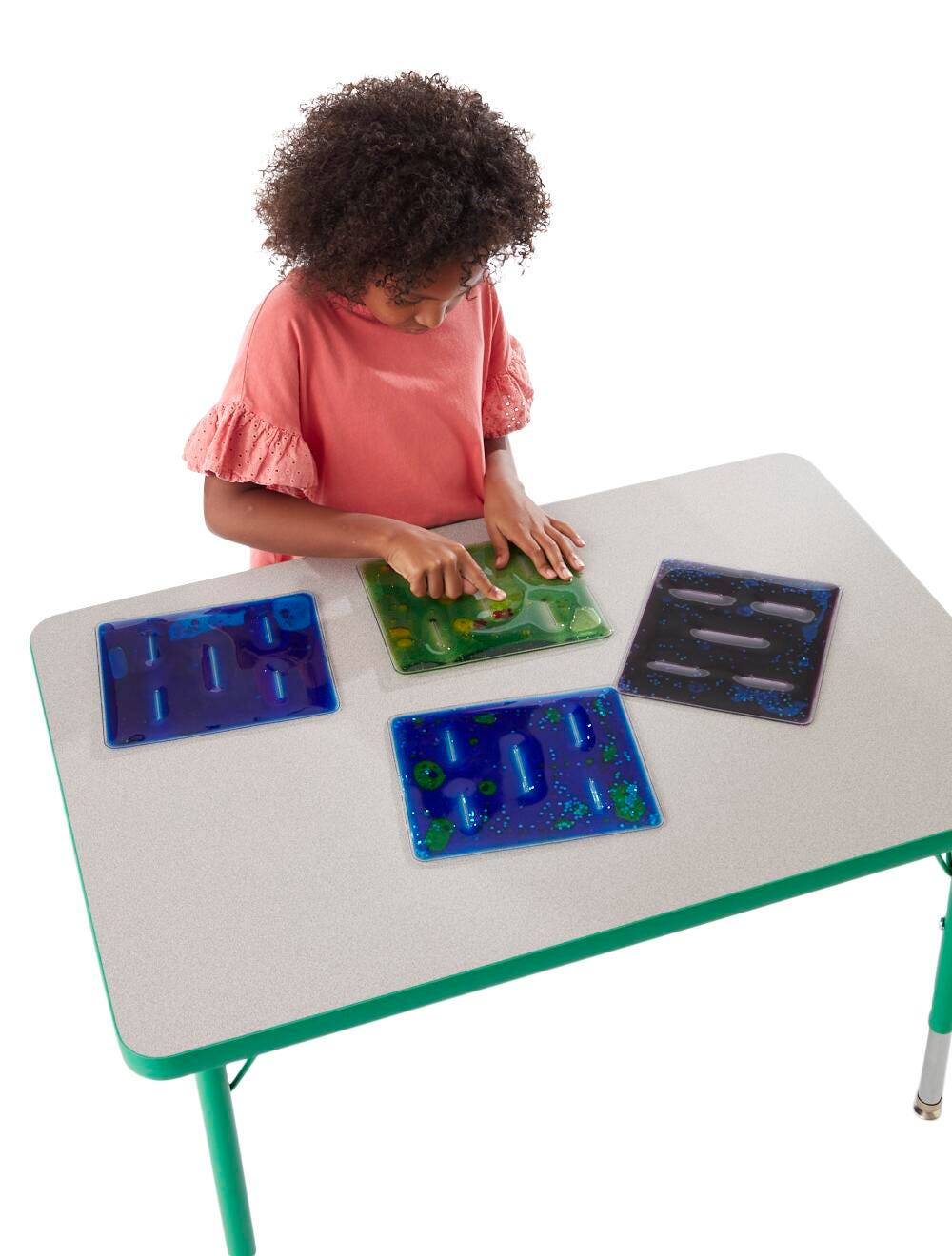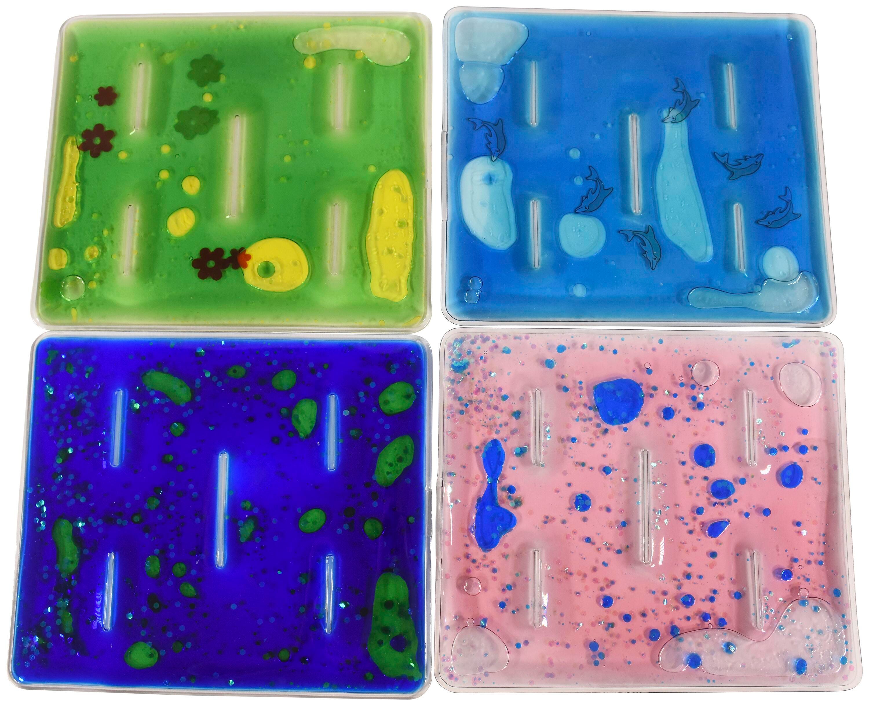 These Abilitations Grid Gel Fidgets are perfect for finger manipulation and fine motor dexterity work. Each set comes with 4 Grid Gel Fidgets in in different colors. Keep them in a pocket, desk, school bag or purse. They can travel or stay at home. Hold them vertical and them turn them upside down to watch the glitter swirl or work the floater back and forth through the narrow chambers in each grid for a great finger workout. Latex free. Filled with a non-toxic mineral oil fluid. Measures 9-1/4 x 7-7/8 inches.