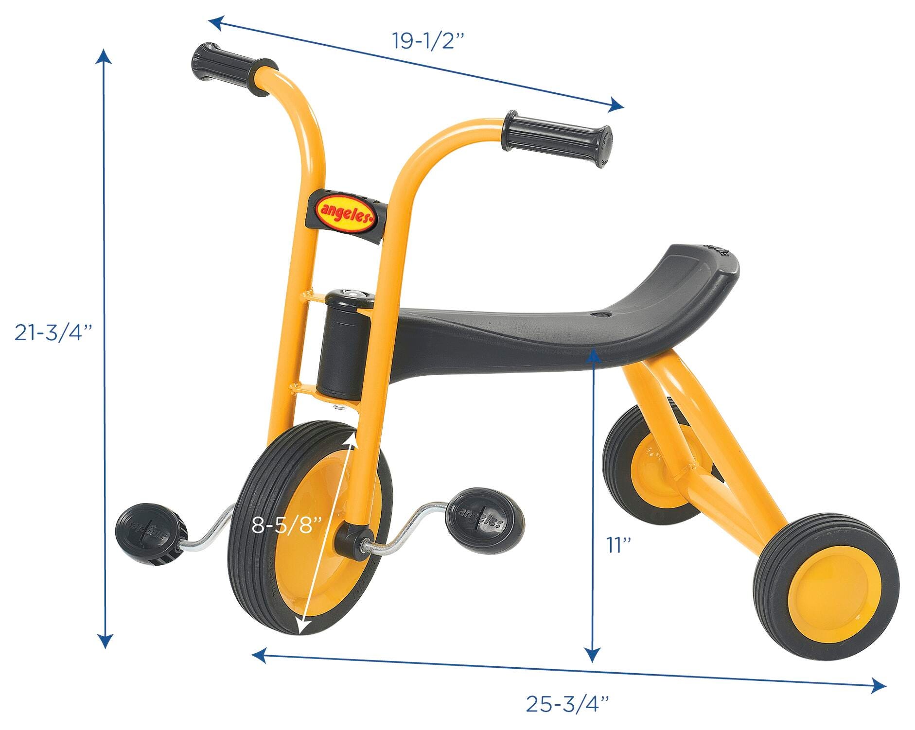 MyRider Mini is perfect for beginning riders! The seat measures 11”h, the front wheel measures 8-5/8” in diameter, and the handlebars measure 21-3/4” h. All MyRider trikes feature the innovative Vario Seat to accommodate children of different sizes. The yellow powder-coated steel frame resists rust and supports children up to 70 lbs. Trikes also feature sturdy, solid tires on spokeless wheels and a no-pinch design. Easy 1-bolt assembly is required. Trikes should be stored indoors.
