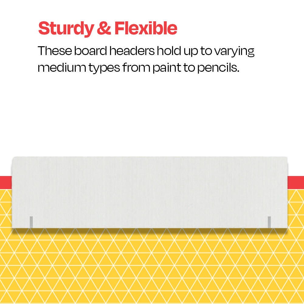 Description School Smart Project Display Headers are made from a sturdy, lightweight one-ply corrugated material that helps in adding important title space and stability to user display. White display headers each measure 36 x 10 inches and include a kraft paper backing.Features Corrugated presentation headers allow additional room on display boards and make poster name or title easy to see Slots fit securely on top of any-size School Smart foam boards Board headers feature white on front for writing or taping on titles while back features natural kraft Pack of 10 single-wall display board headers are excellent for science fair projects, booths, and beyond