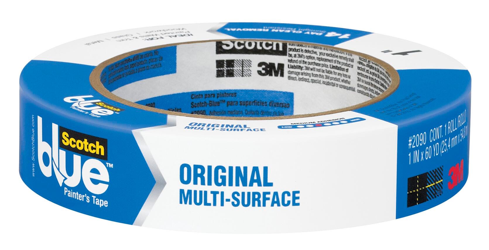ScotchBlue Painter's Tape Original Multi-Surface 2090 is the #1 selling painter's tape in the U.S. for a reason - it's the original blue tape that DIY painter's and pros have loved for more than 25 years. It delivers sharp paint lines and can be used on a variety of surfaces, such as walls, trim, glass and metal. It removes cleanly for up to 14 days and does not cause surface damage, even when exposed to direct sunlight. 9 Rolls.