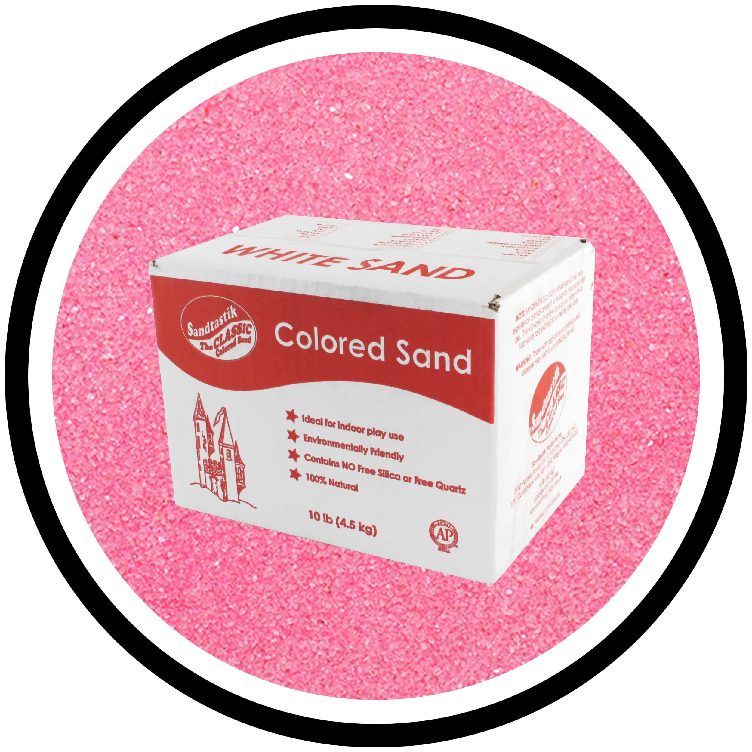 Description Sandtastik offers an inspiring spectrum of classic bright and light colors to accessories all craft, decor and professional endeavours. Ideal for card making, texturing art, model scenery, jewelry, sand and sensory tables, sand art and more. Sold as a 10 pound box of pink sand.