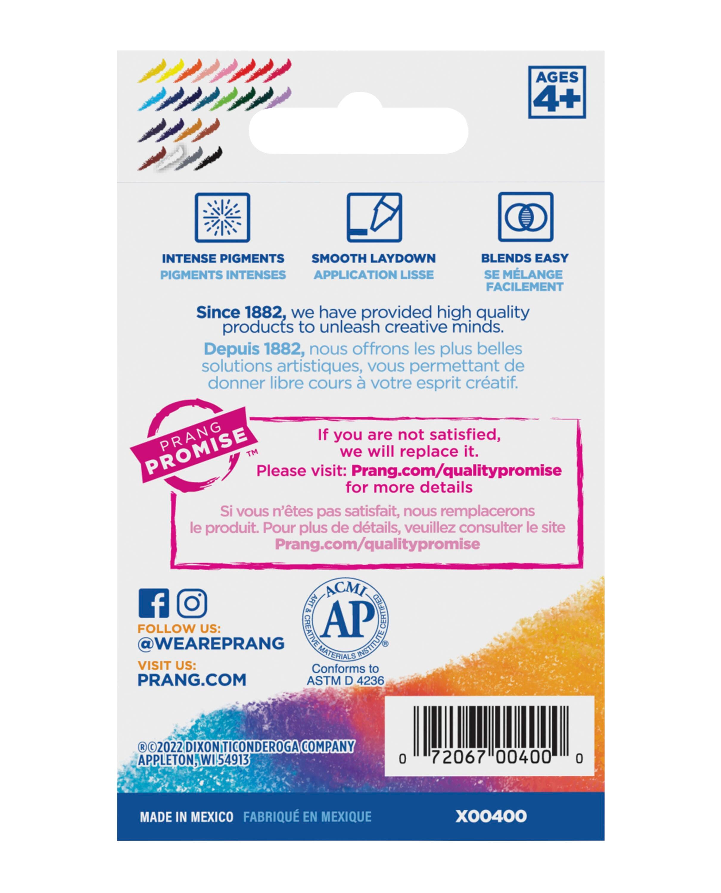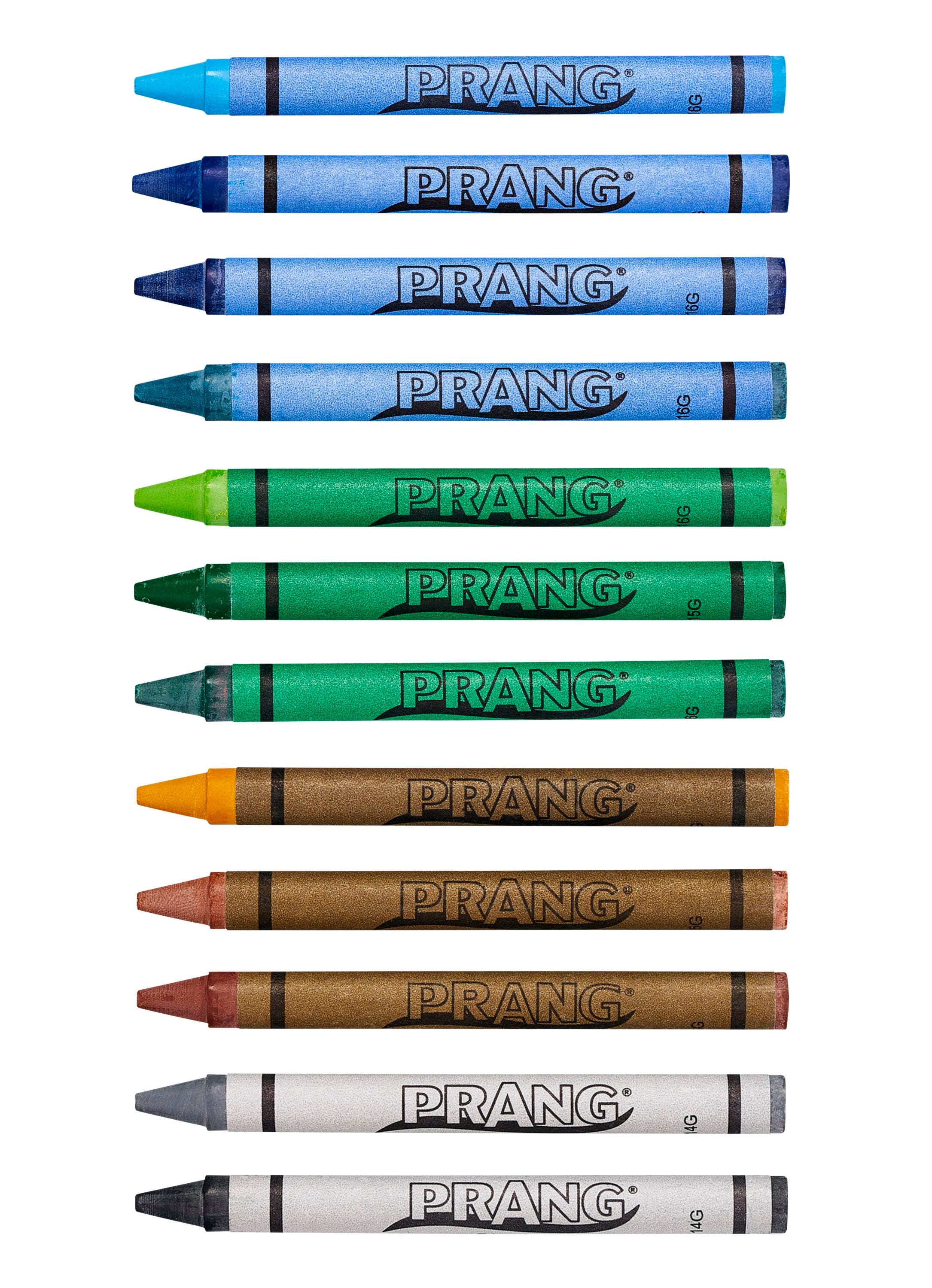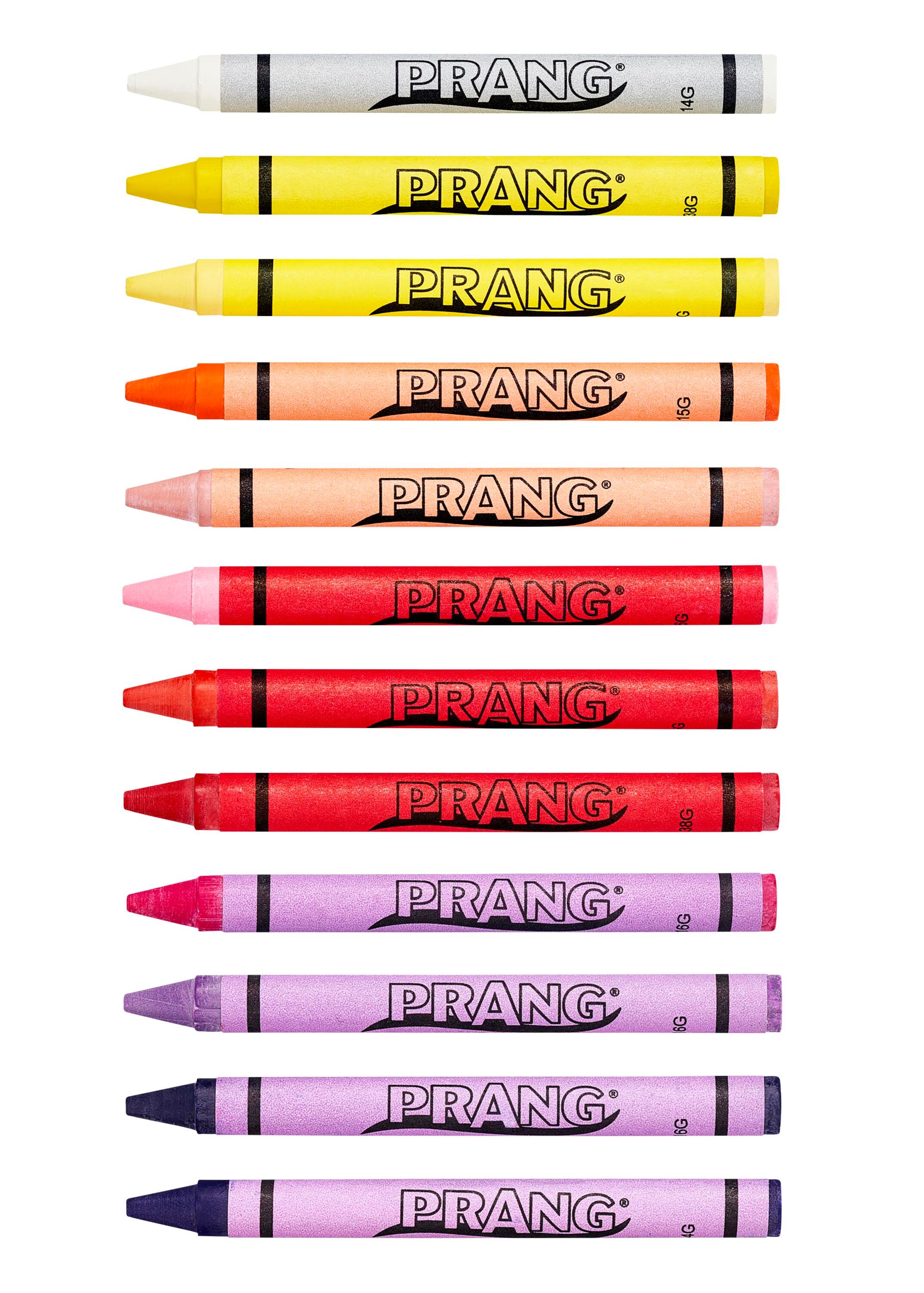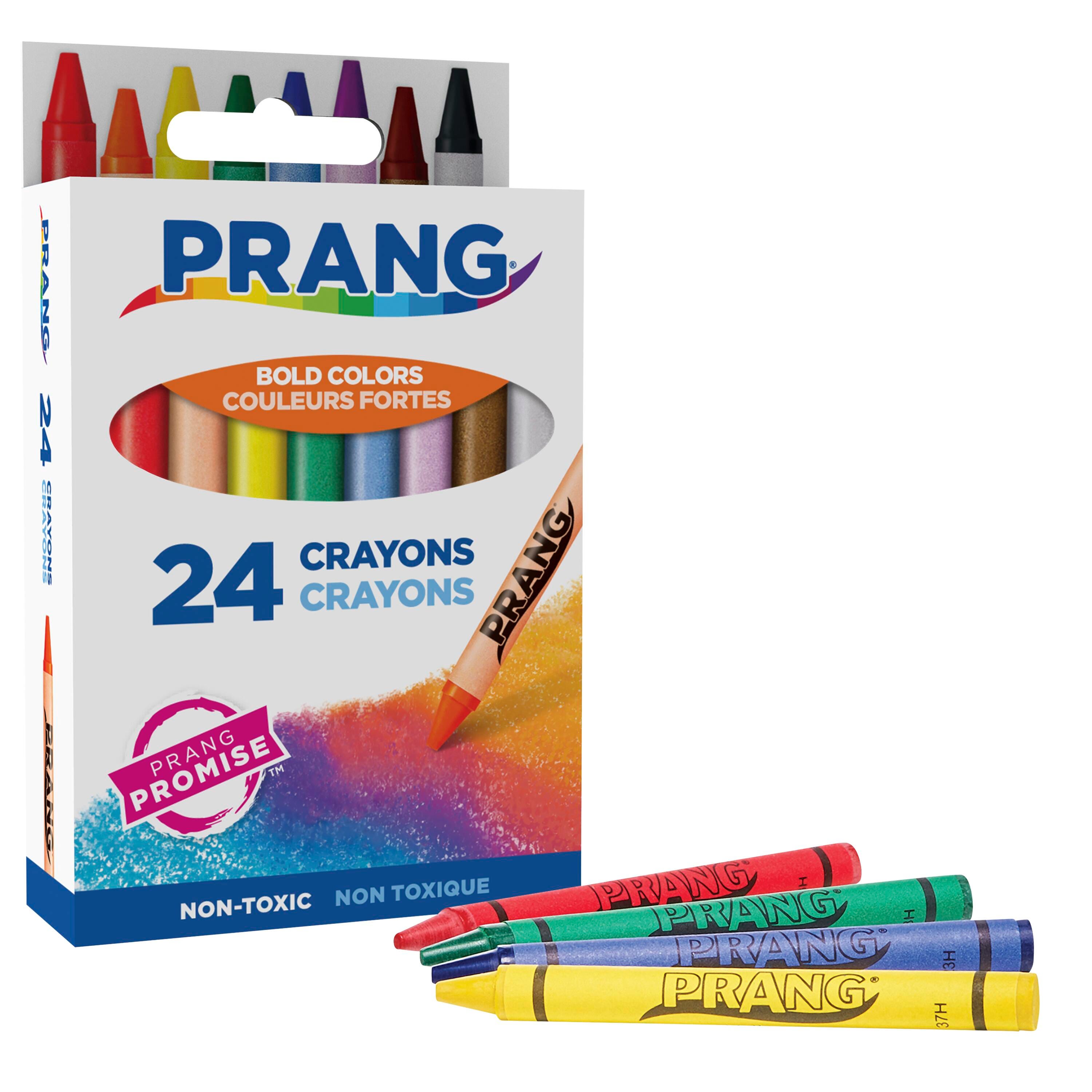 Description Prang Molded Crayon Set is free from paraffin and wax and is made from 100% renewable resources with a unique soybean oil formulation. Non-Toxic colors are assorted has brilliant hues, delicate shades and subtle blends. Colors are intense and opaque and are brighter and smoother than ordinary wax crayons. It is sold as 24 standard colors per set.