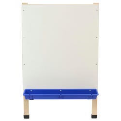 Childcraft’s Toddler Art Easel is the perfect height for toddlers to paint, draw, and more. This two-sided easel features markerboard dry-erase panels on both sides for children to draw and erase with ease. It also features four easel clips and two blue plastic trays to hold paint cups, brushes, and other art supplies so they can work on their latest painted creation. Hinged at the top, this easel can easily be folded flat to store if needed, perfect for dynamic spaces that are tight on space such as childcare centers and preschools. Locking metal stay arms hold the easel open and provide extra stability. Some assembly required. Measures 26 W x 15-1/2 D x 39 H inches.Features