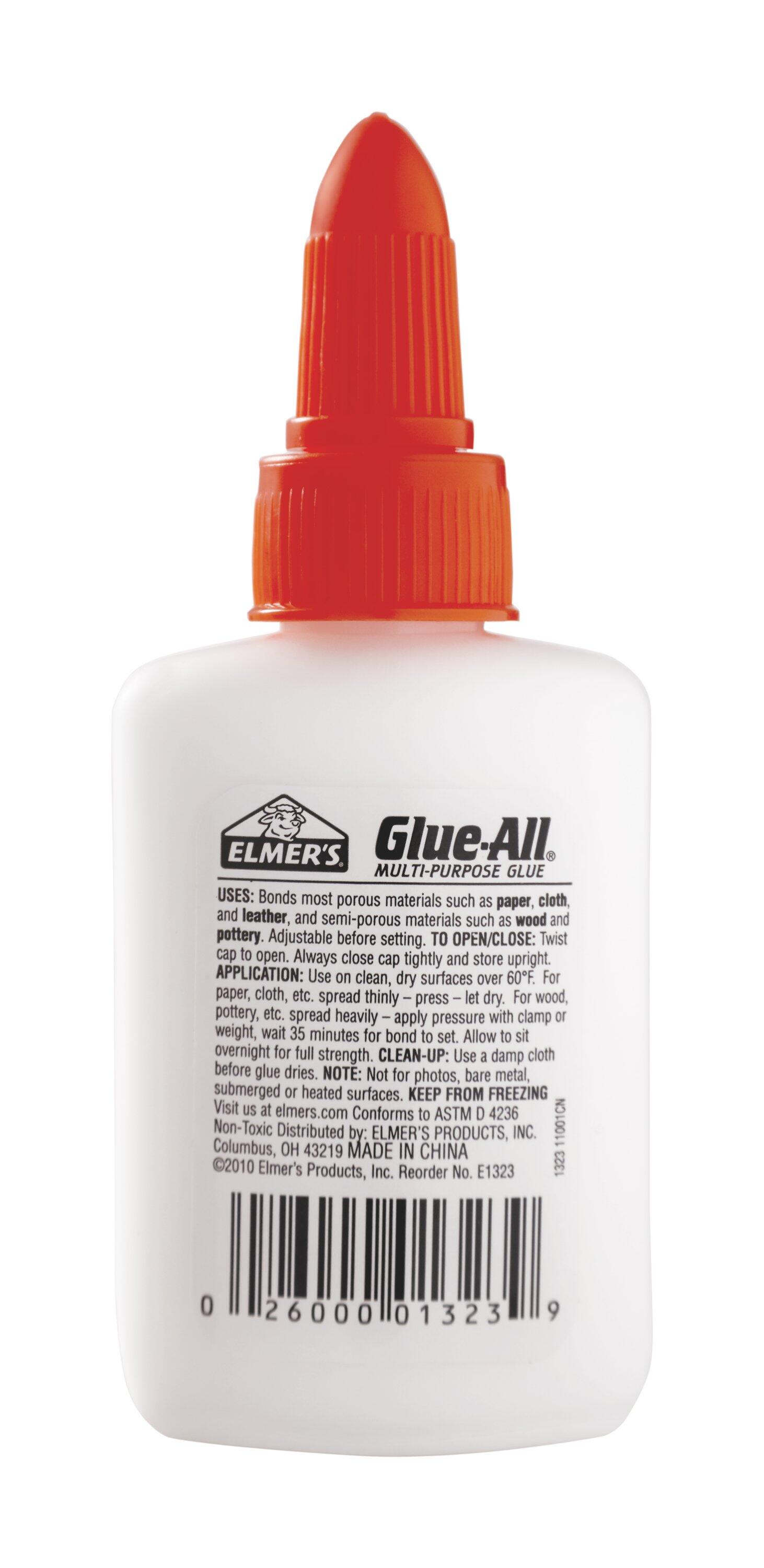 The Glue-All Multi-Purpose Glue from Elmer's is now stronger than ever! The extra-strong glue is ideal for household repairs, work presentations, craft and school projects. It firmly bonds materials to a variety of surfaces like paper, fabric, wood, ceramics, leather, and more! The convenient squeeze top bottle and quick-drying formula make application easy and neat. Confidently handle a variety of projects in the classroom, home, or office with this trusted glue. Not for children under the age of 3.