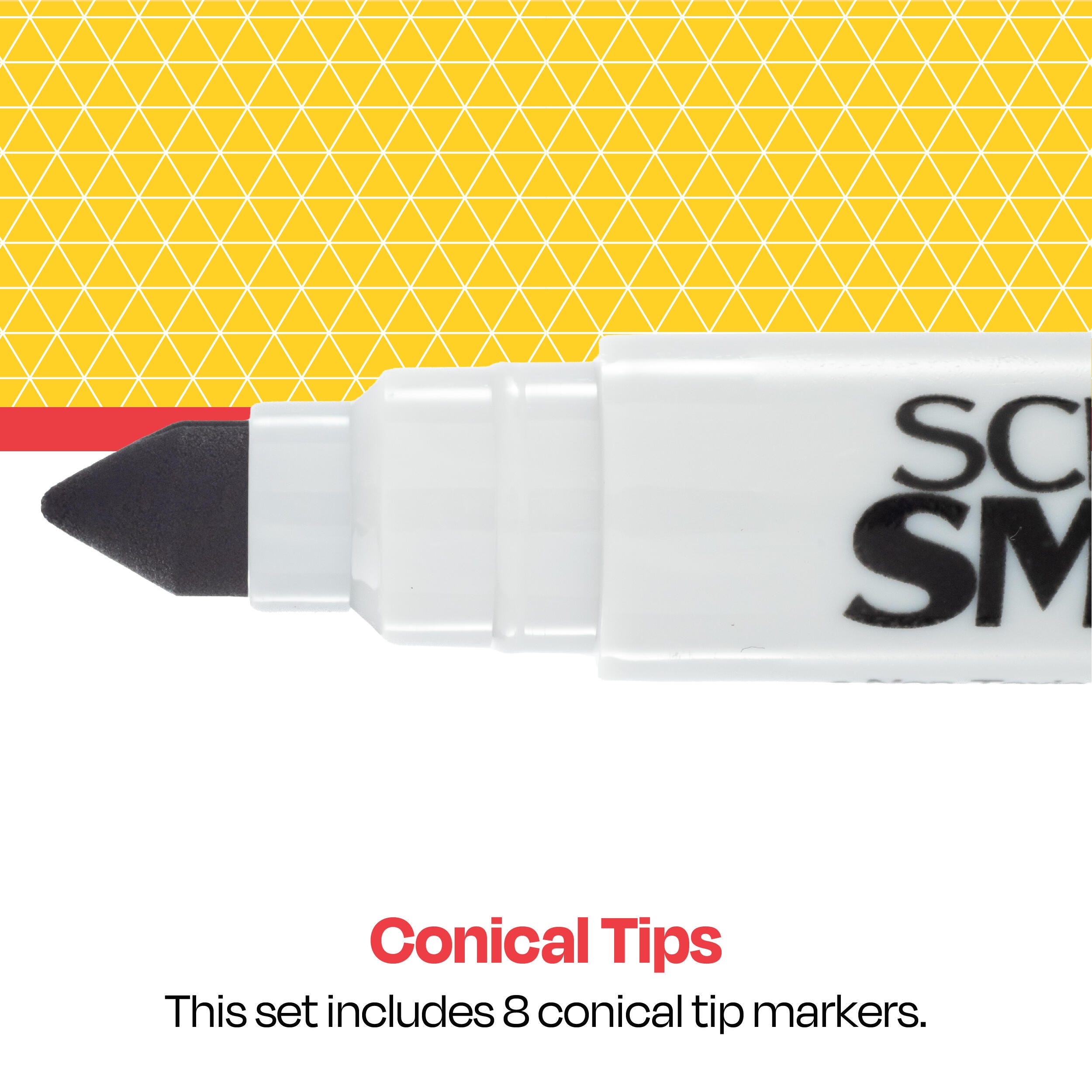 School Smart Washable Markers, Conical Tip, Assorted Colors, Pack of 8