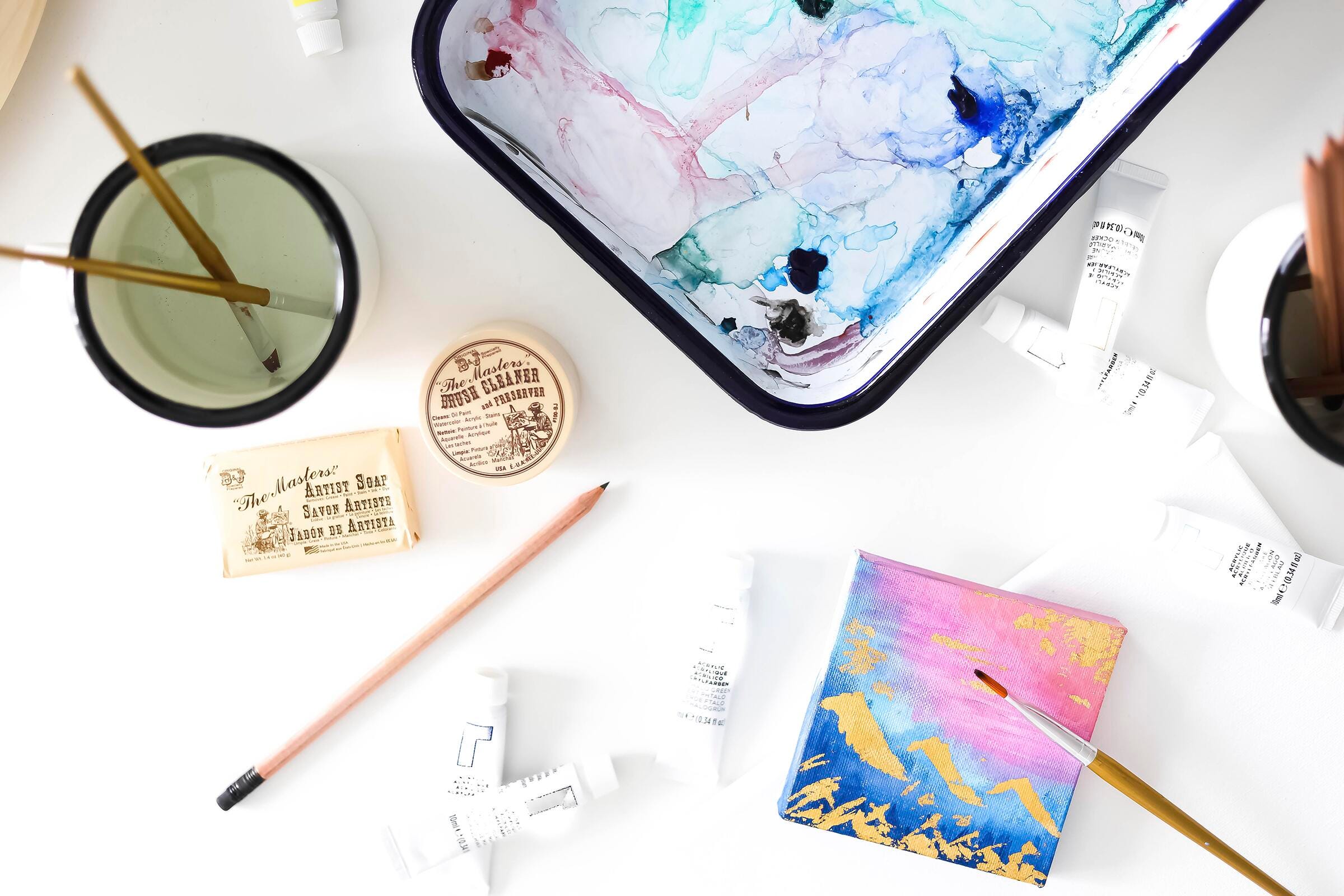 Description The Masters Brush Cleaner and Preserver restores the original snap and luster of hardened sable, bristle and synthetic brushes. Non-Toxic one step cleaner comes in a 2.5 oz container and is ideal for use with water on oils, acrylics and watercolors.