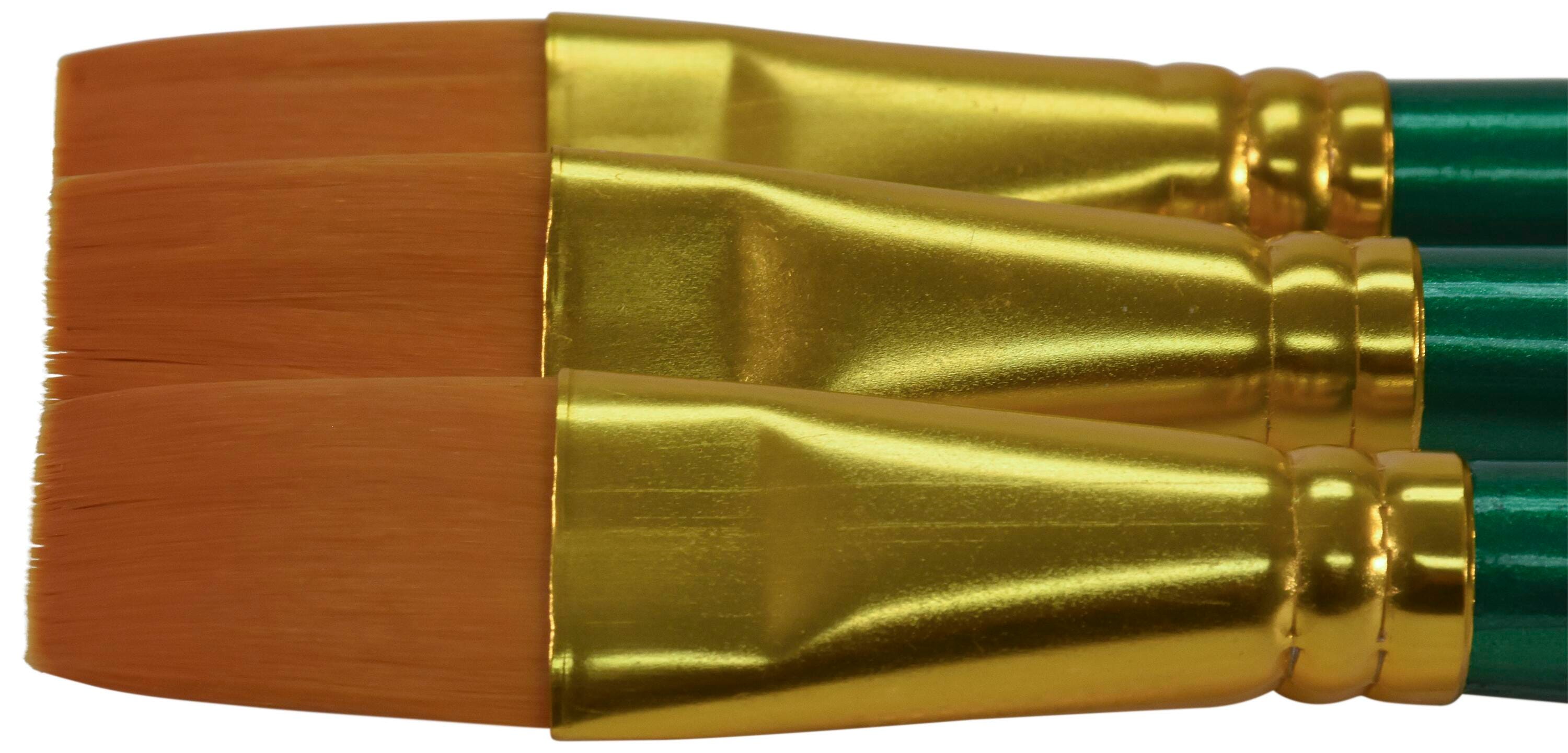 3 Flat Golden Taklon Brushes, Size 1 Inch