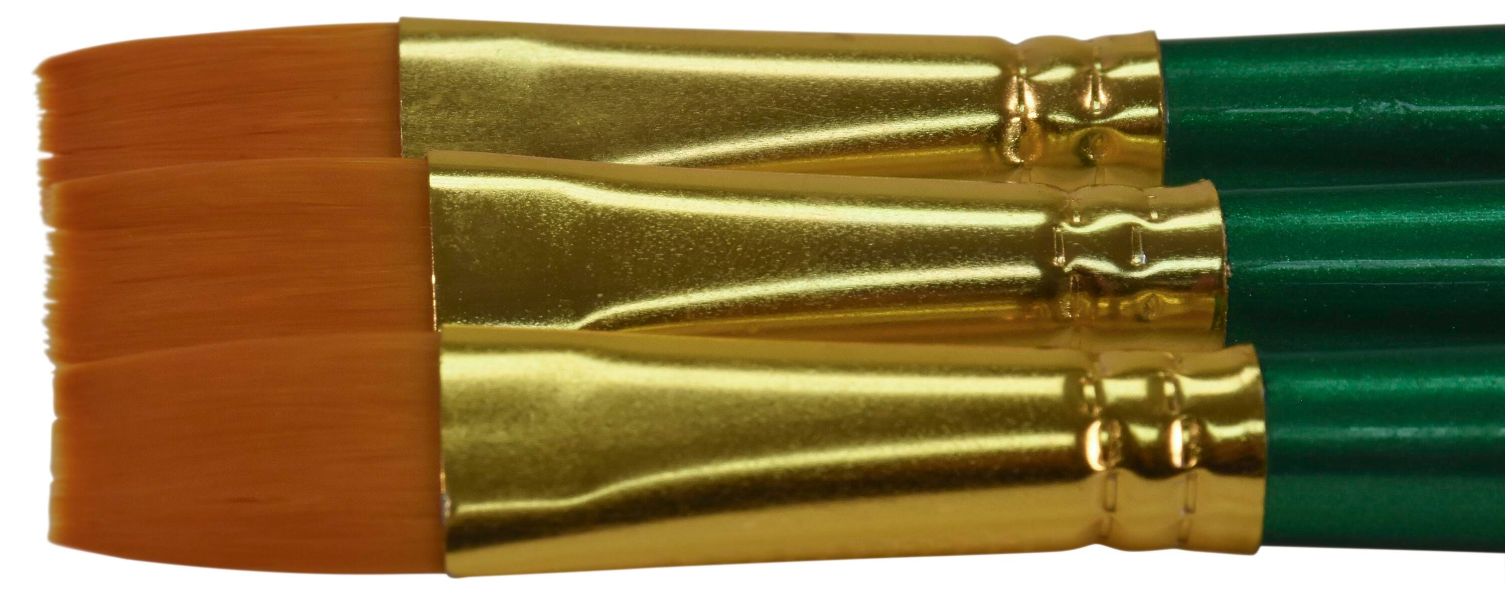 3 Flat Taklon Brushes, Size 1/2 Inch