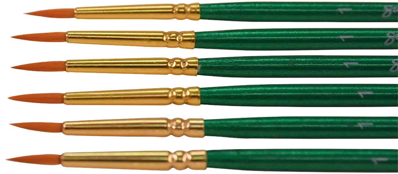 Sax golden taklon paint brushes with short handles and a round tip provide optimum snap and smooth application. Excellent brush strokes help students create their best projects while enhancing their painting techniques on different mediums. Our 6-pack of synthetic bristle brushes is perfect for all your crafting needs in the classroom or art studio. Use the size 1 brushes for very fine detail and small spaces. Golden nylon synthetic hair brushes are great with different mediums, including oil, acrylic, and watercolors.
