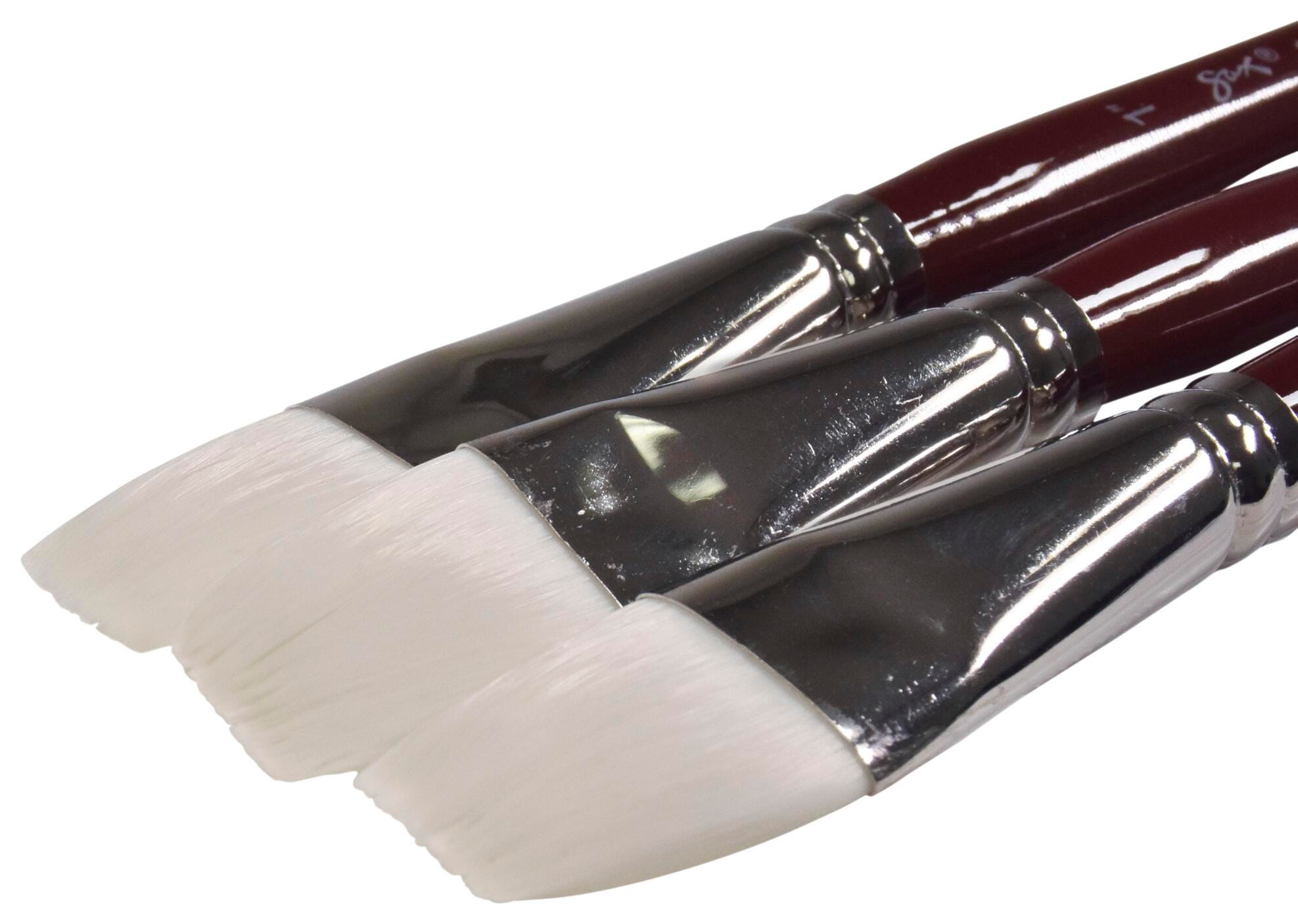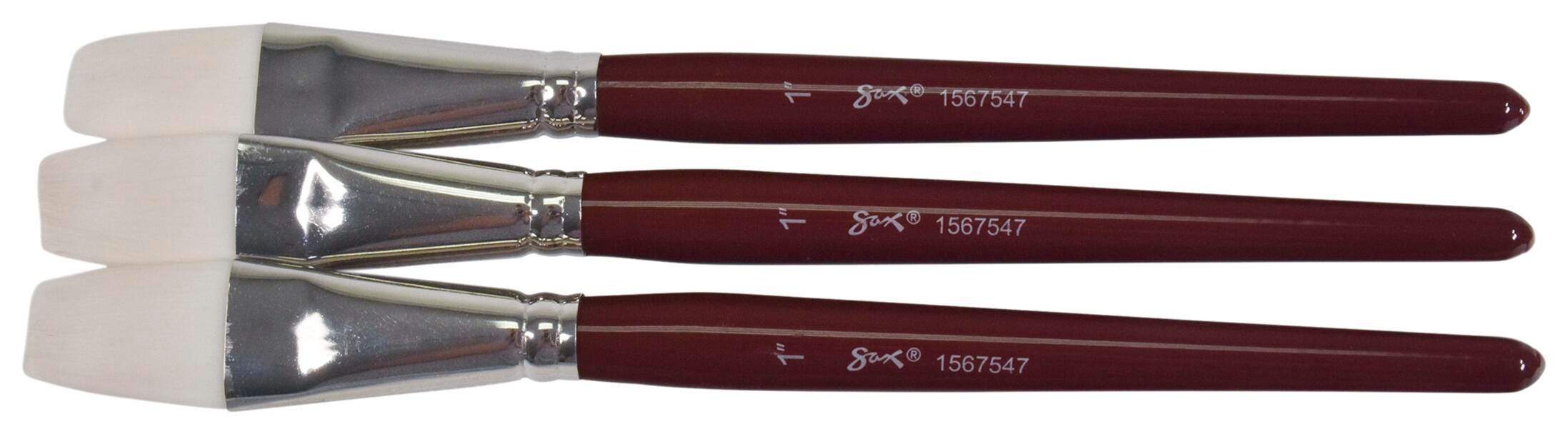 Sax Optimum White Synthetic Taklon Paint Brushes, Flat Type, Short Handle, 1 Inch, Set of 3