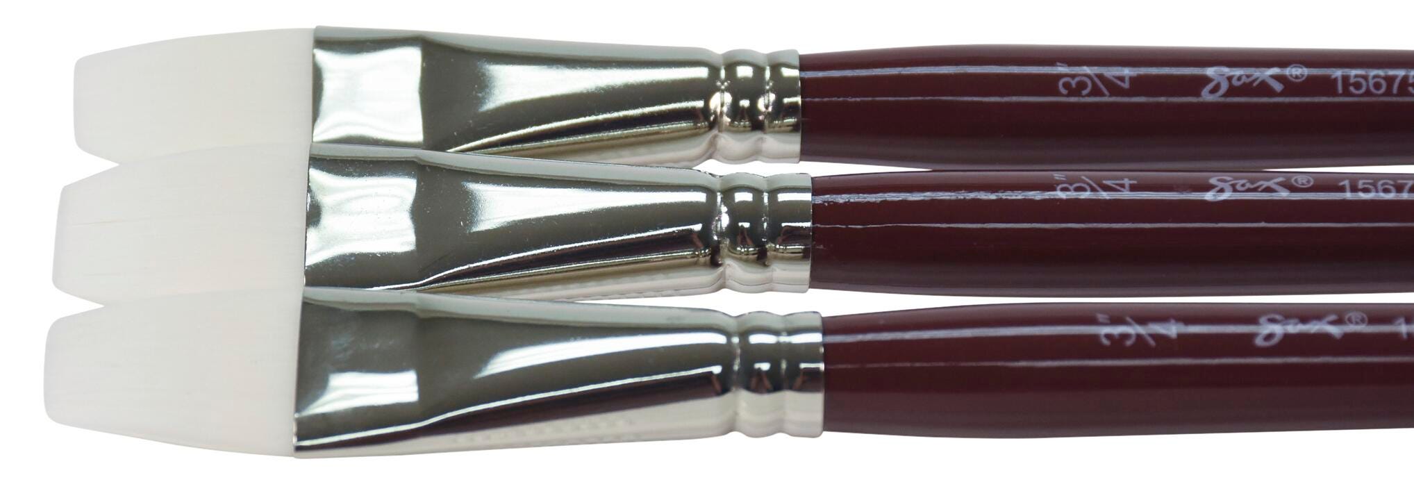 Sax Optimum White Synthetic Taklon Paint Brushes, Flat Type, Short Handle, 3/4 Inch, Set of 3
