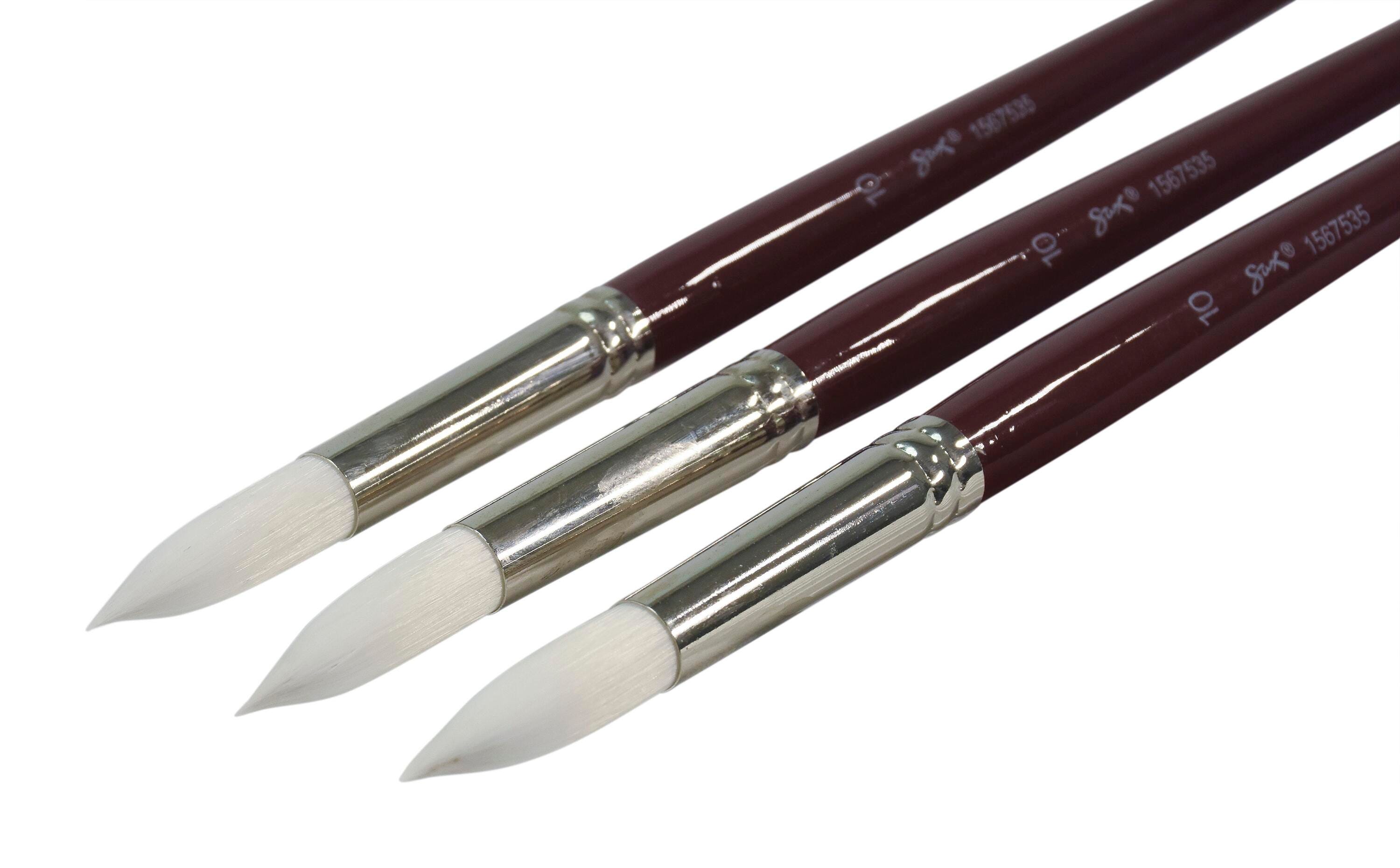 Sax Optimum White Synthetic Taklon Paint Brushes, Round Type, Long Handle, Size 10, Set of 3