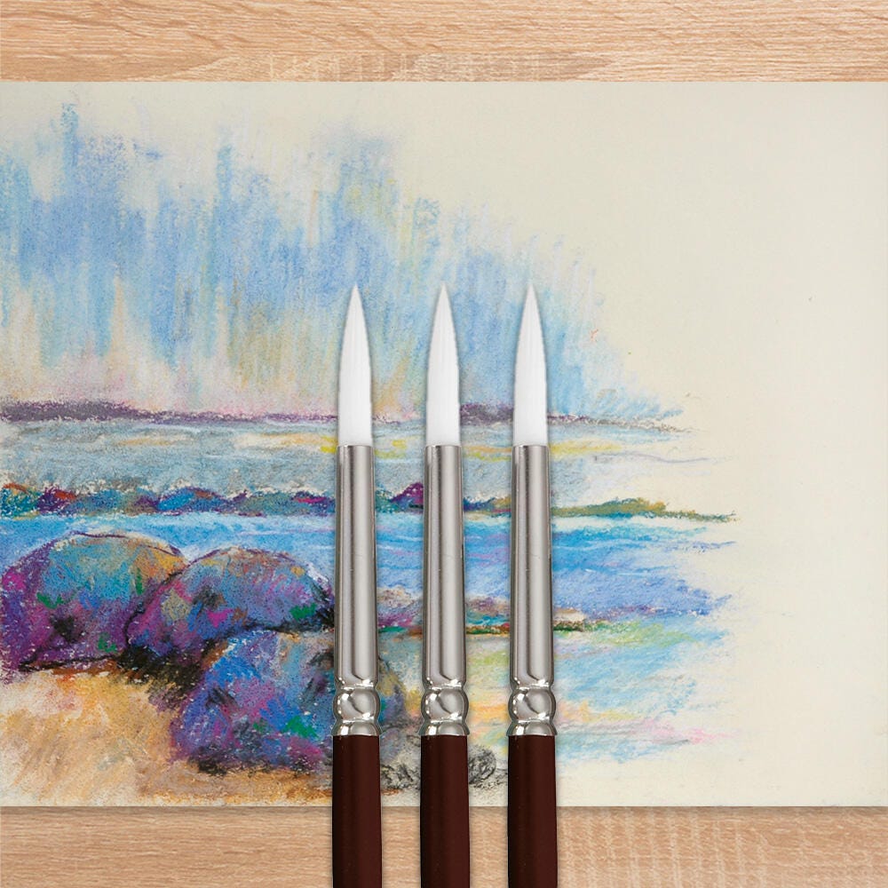 Round brushes are great for detailed work, thick paint application, and controlled washes