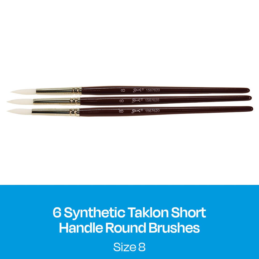 Sax Optimum White Synthetic Taklon Paint Brushes, Round Type, Short Handle, Size 8, Set of 6
