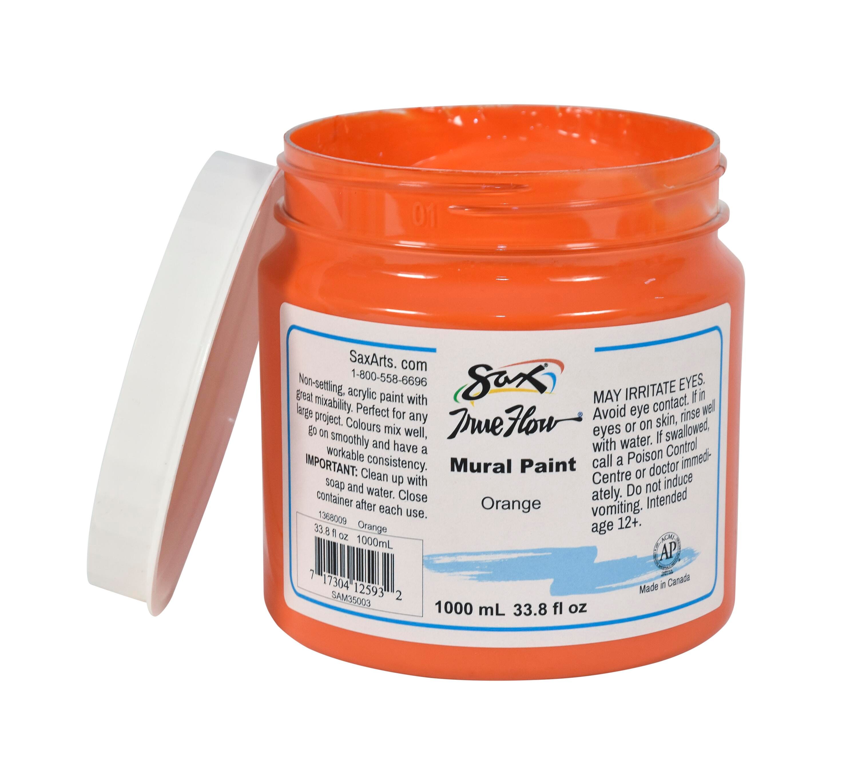 Sax acrylic mural paint applies smoothly on paper and other media without clumping. Use the orange color on its own or mix with others to create unique, custom shades. The non-settling formula is highly pigmented, non fading, and has a very workable consistency for kids and adults. Turn to this painting medium for school projects, art classes, intermixable painting, group painting, or background canvas painting. Our large acrylic paint comes in a durable plastic container with a wide-mouth opening for mess-free fun.