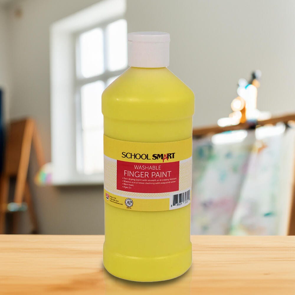 Description School Smart washable finger paint lets young children’s imaginations soar. This yellow washable finger paint comes in an economical 1 pint bottle. This paint can be used for painting indoors or outdoors and arts and crafts projects at schools, childcare centers, or homes. Children can explore the tactile world through hand and finger painting for beginners. Little hands have fun, while clean up afterward is a breeze for teachers and parents. The vibrant, fast drying paint for kids has a smooth texture. This non-toxic finger paint washes out of most clothing with soap and cold water.Features Fast-drying paint for kids and toddlers Water-based formula and washes out of most fabrics Finger painting for beginners is a great activity for preschools, kindergartens, childcare centers, and after-school centers Non-toxic; conforms to ASTM D-4236