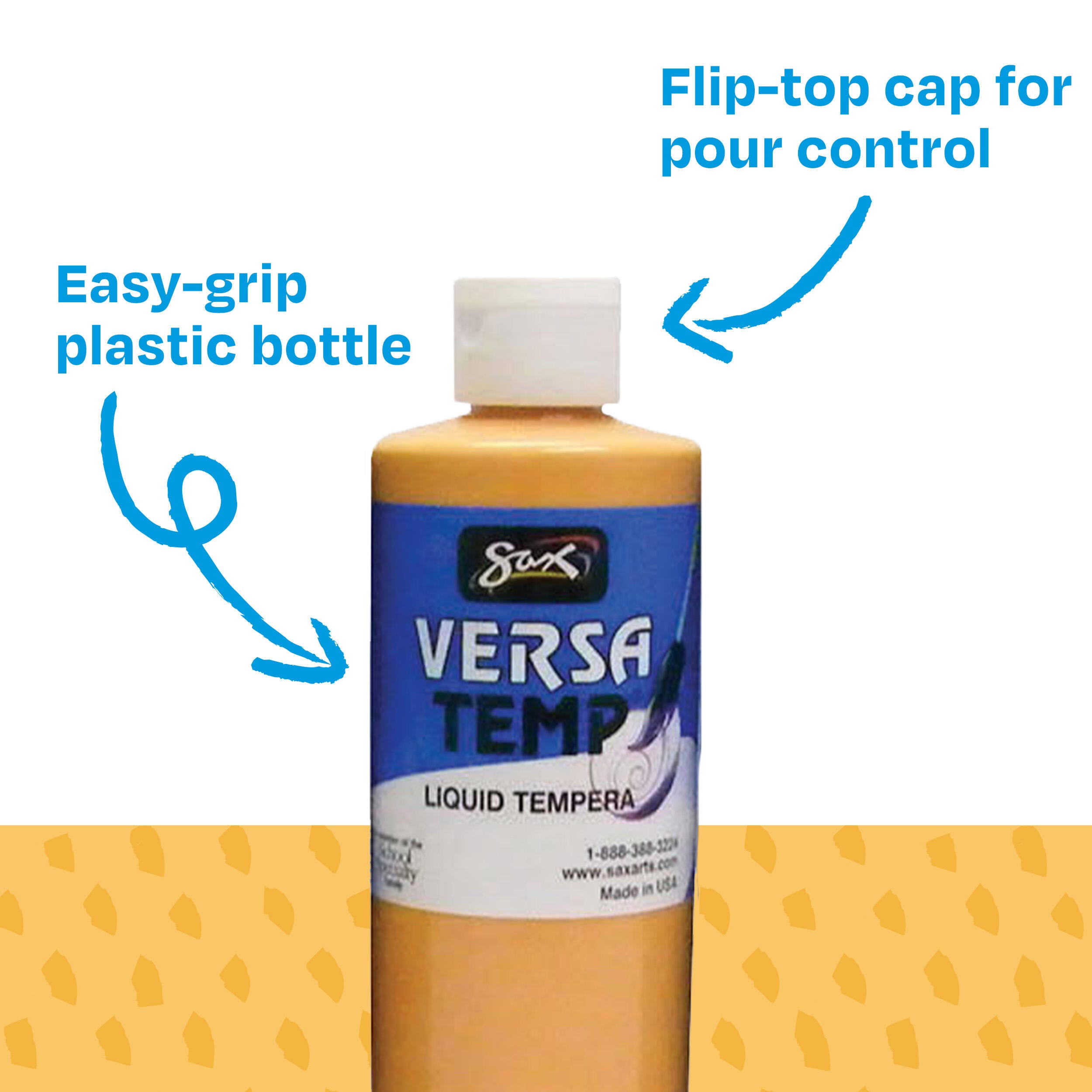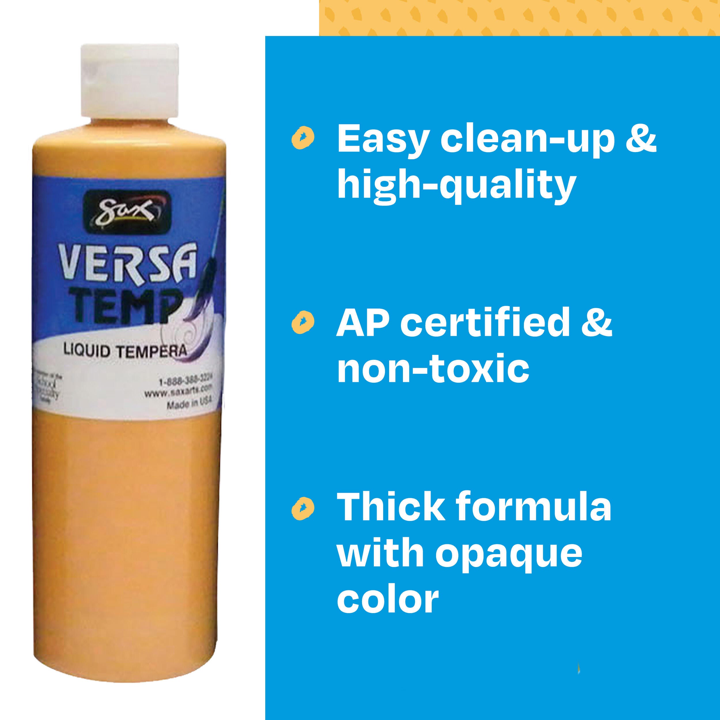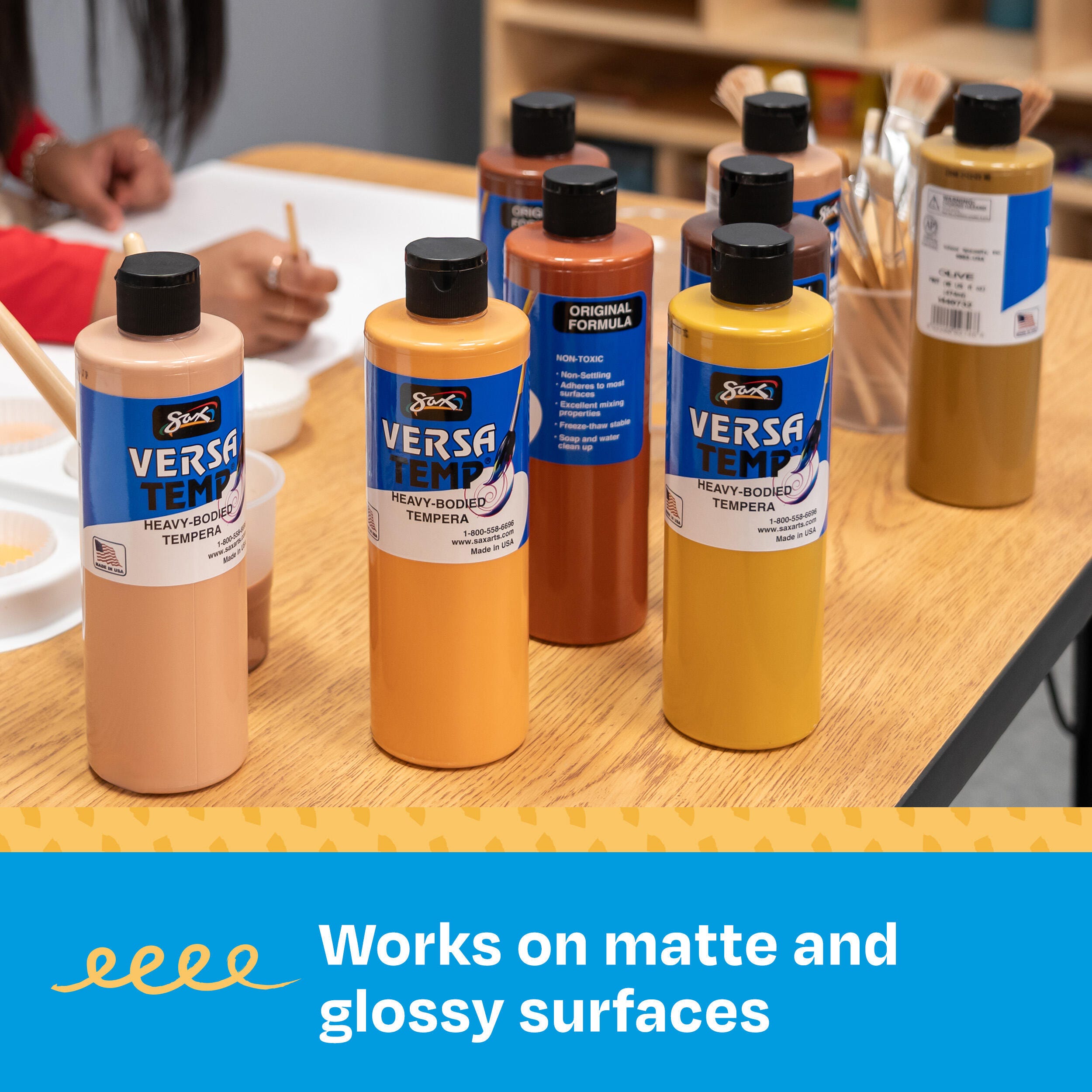 Description Sax Versatemp heavy-bodied tempera paint in skin tone colors is perfect for beginners and experts. The convenient pint bottles are easy to pour and store, and are perfect for sharing in the classroom. Complete art projects and posters that help promote diversity with our quality paints, made with a heavy formula for high opacity.