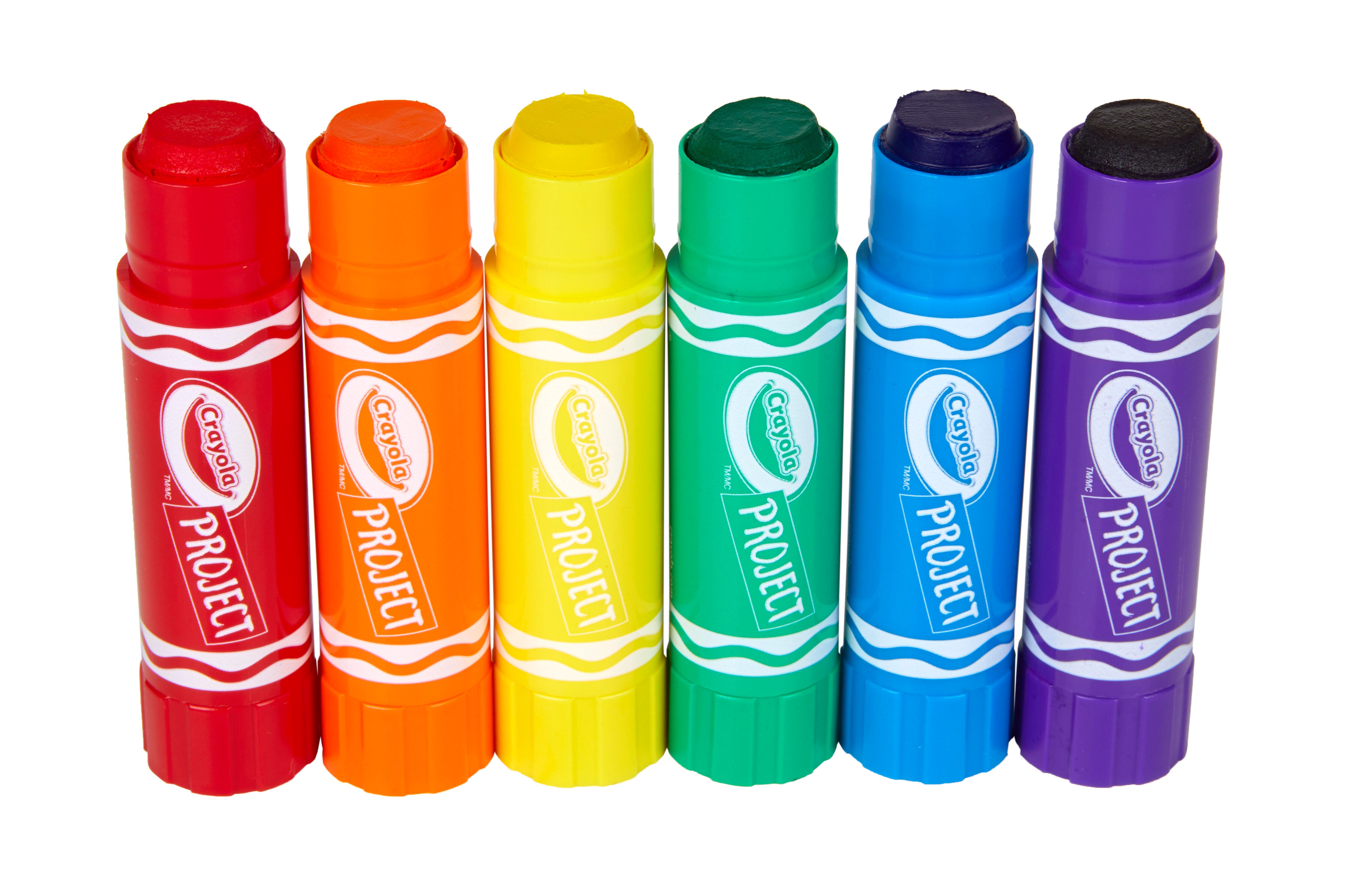 Crayola Project Paint Sticks help keep craft time simple. This set is a perfect less-mess solution for any paint or craft project big or small. These Project Paint Sticks feature a child-friendly formula that dries quickly and is simple to clean up. The sticks are easy for little hands to hold and deliver smooth laydown with consistent coverage. This set includes 6 paint sticks, 1 each in the following colors: red, orange, yellow, green, blue, and purple.