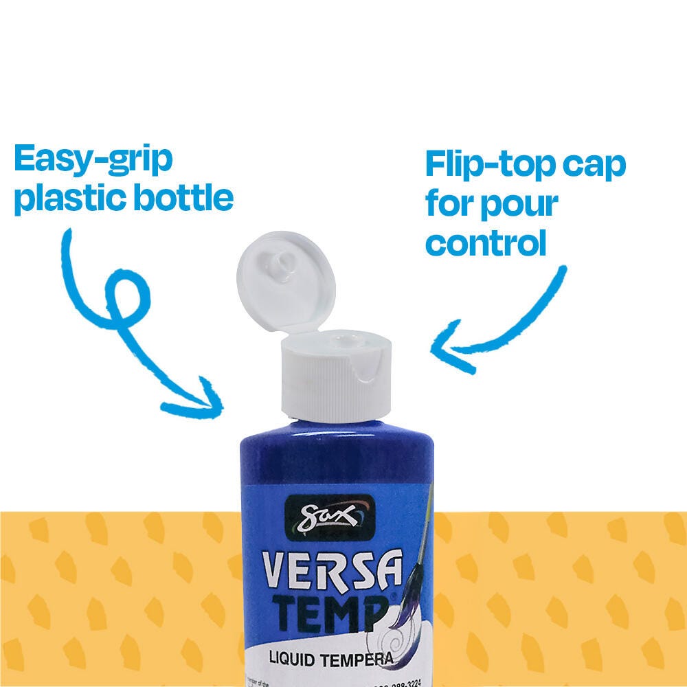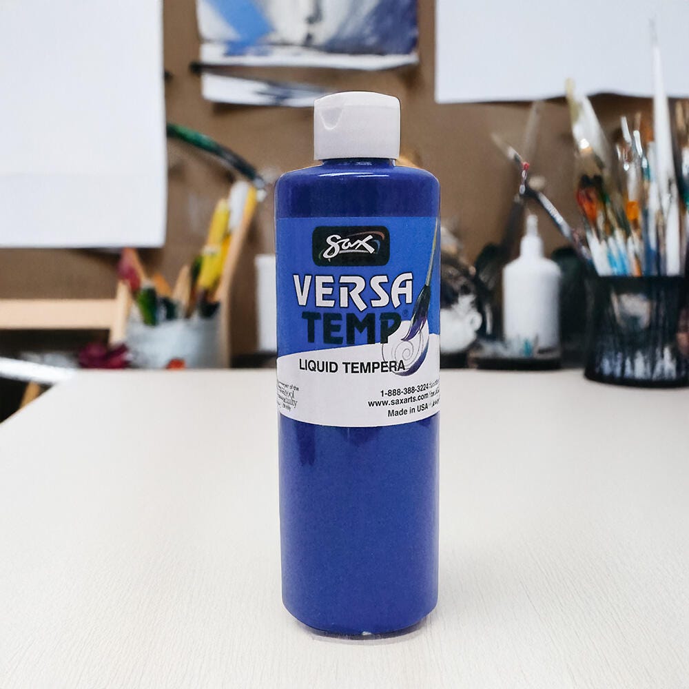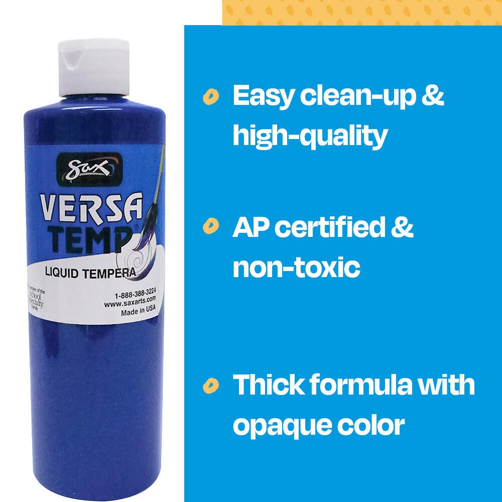 Sax Versatemp heavy-bodied tempera paint in primary blue produces bold, vibrant results. Foster creativity with a paint that resists cracking and chipping. The convenient pint bottle is easy to pour and store, and is perfect for sharing in the classroom. Complete art projects, posters, and signs that stand out with one shade or craft new hues by mixing. The heavy formula is easy to apply and mix.