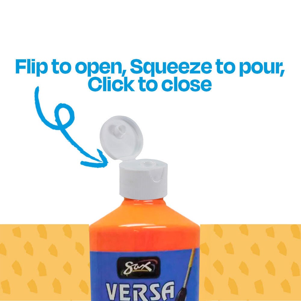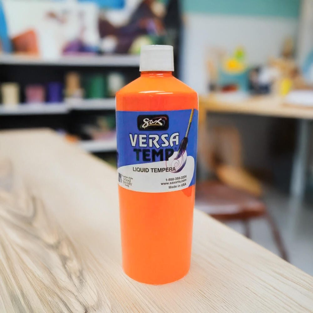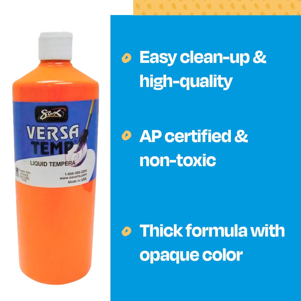 Sax Versatemp heavy-bodied tempera paint in orange produces bold, vibrant results. Foster creativity with a paint that resists cracking and chipping. The convenient quart bottle is easy to pour and store, and is perfect for sharing in the classroom. Complete art projects, posters, and signs that stand out with one shade or craft new hues by mixing. The heavy formula is easy to apply and mix.