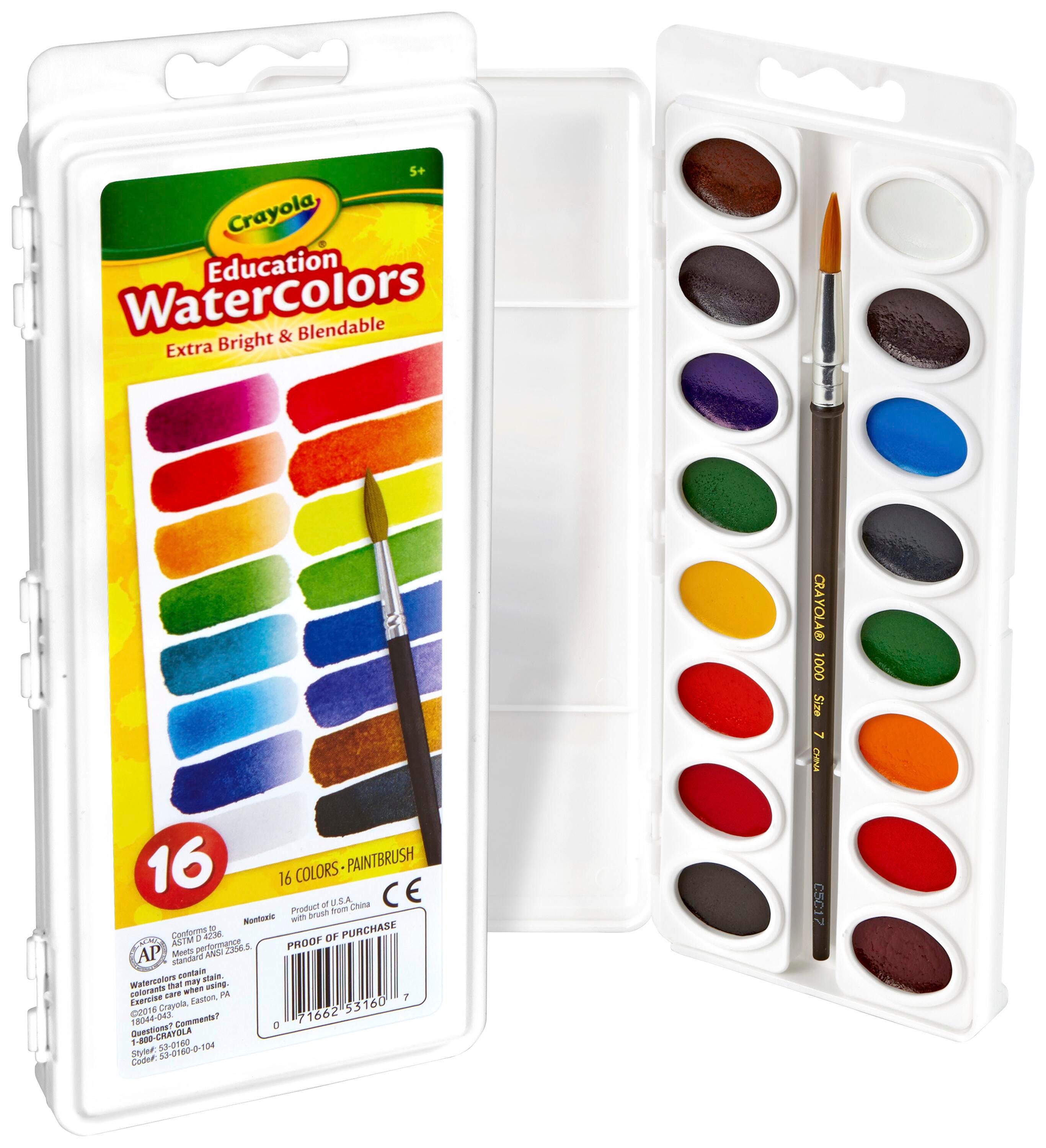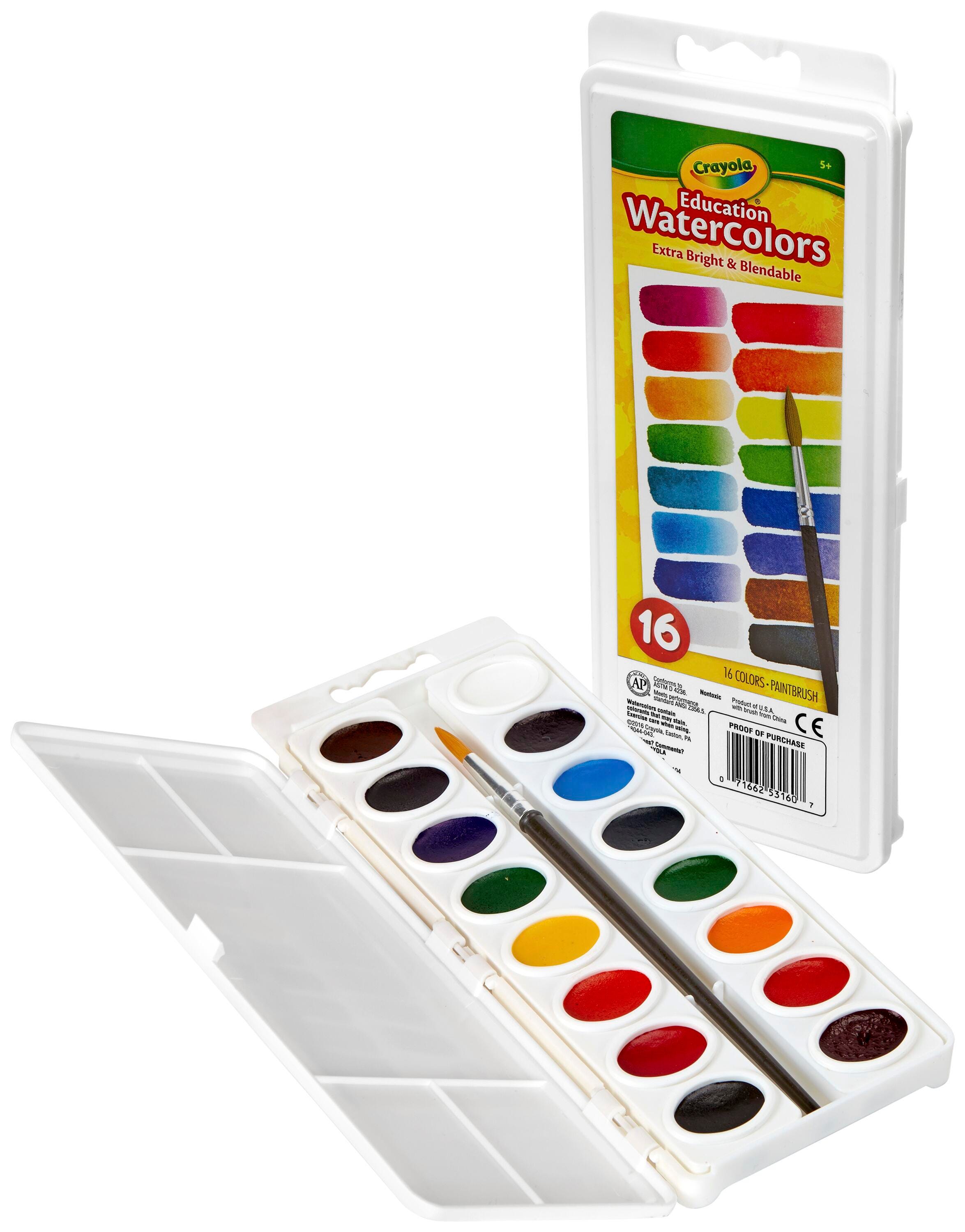 Crayola Education Watercolor Paint Set, 16 Oval Pans, Assorted Colors