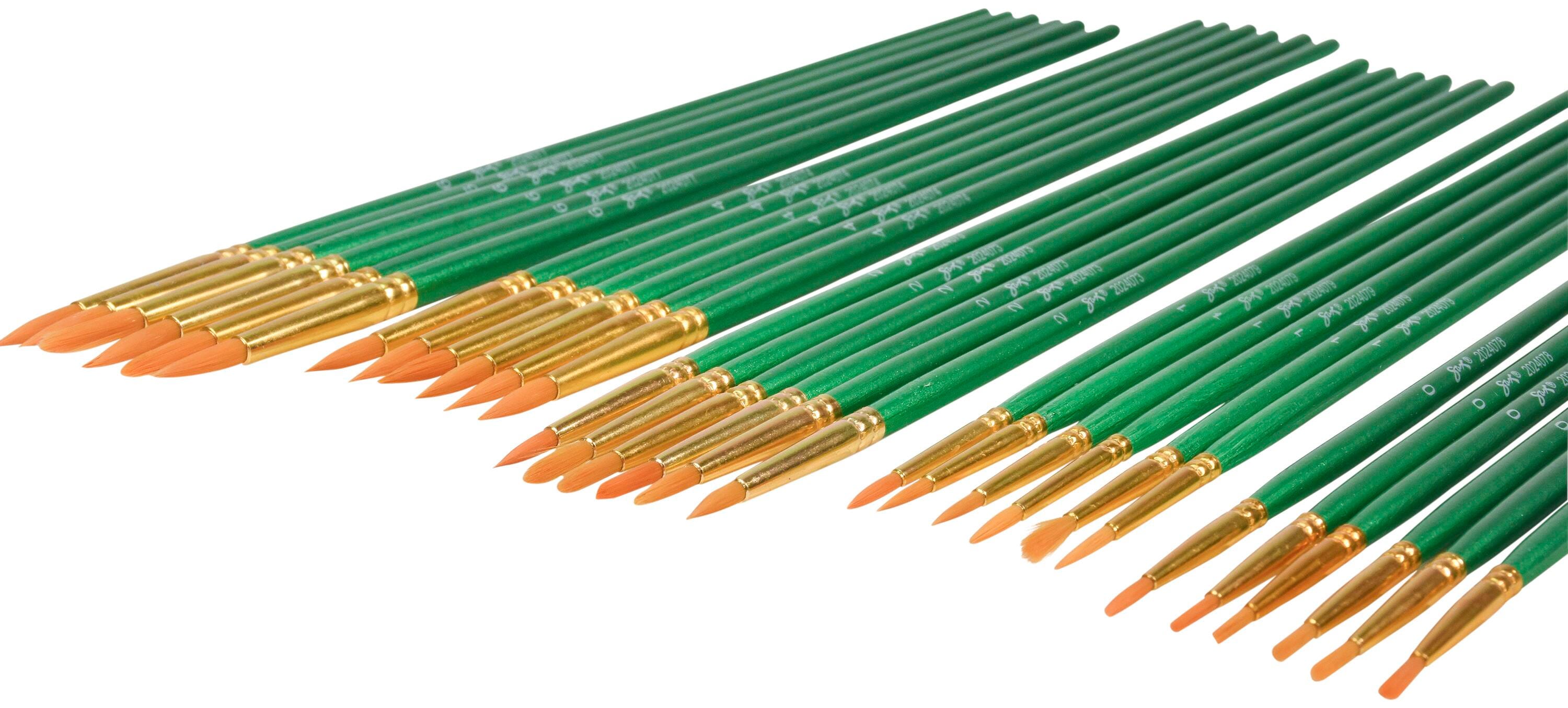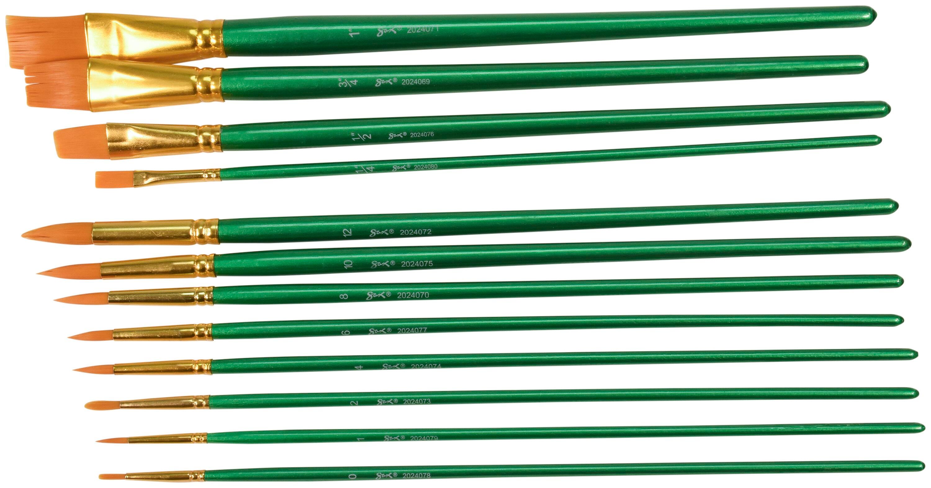 Sax Optimum Golden Synthetic Taklon Paint Brushes with Long Handles, Assorted Sizes, Set of 72