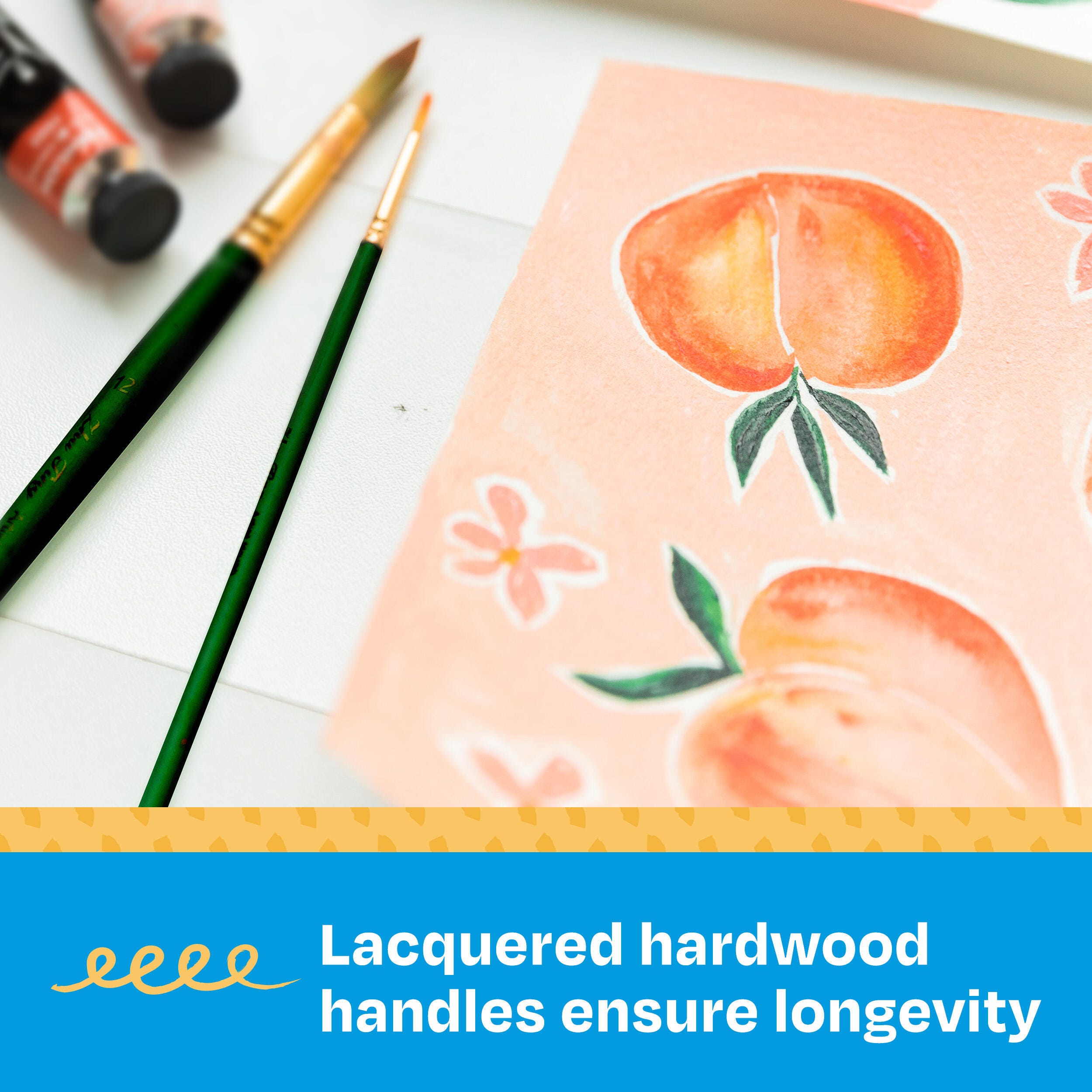 Long handles enable better comfort for easel painting and are made of hardwood with a lacquered finish