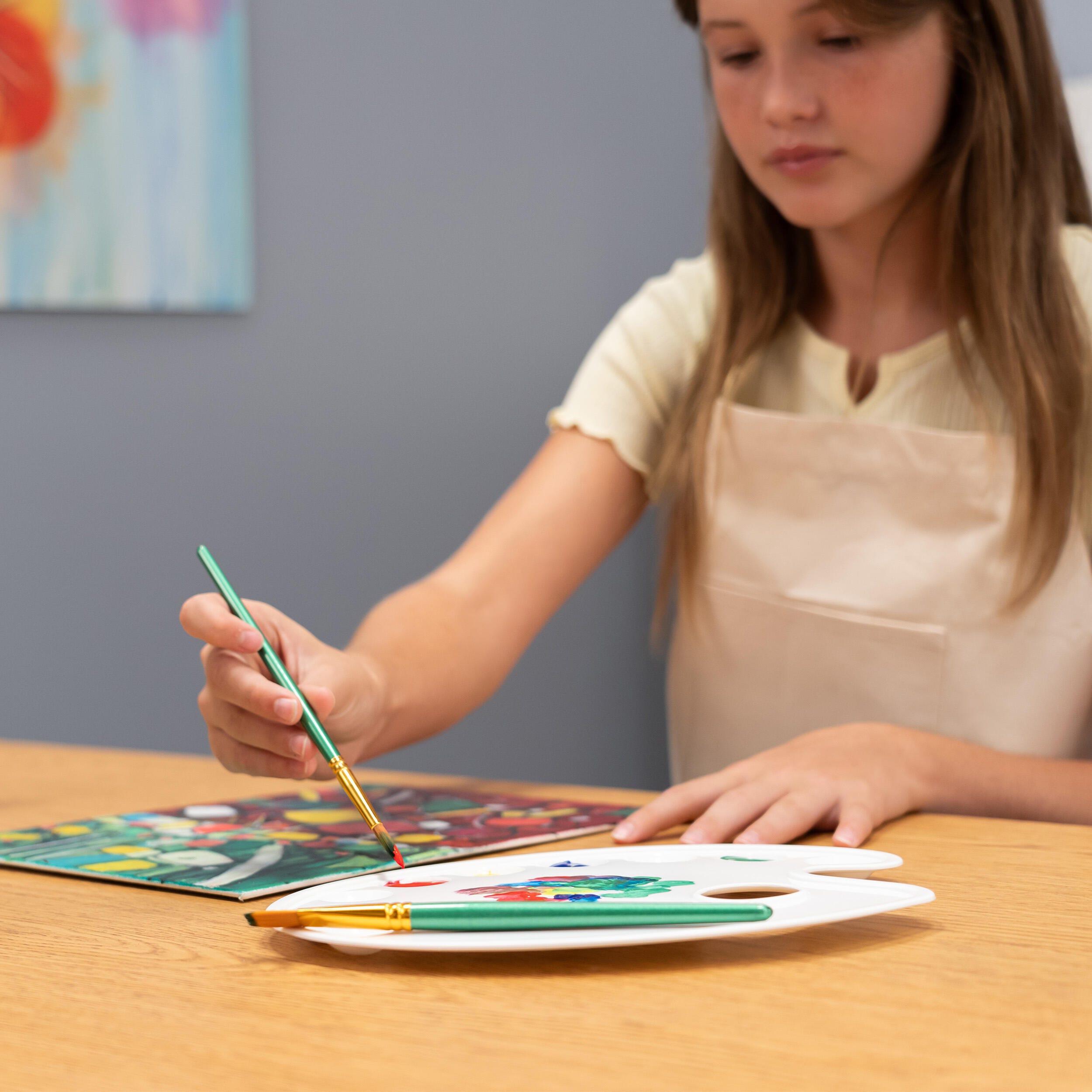 Mixed round and flat brushes allow for both fine and thick paint application