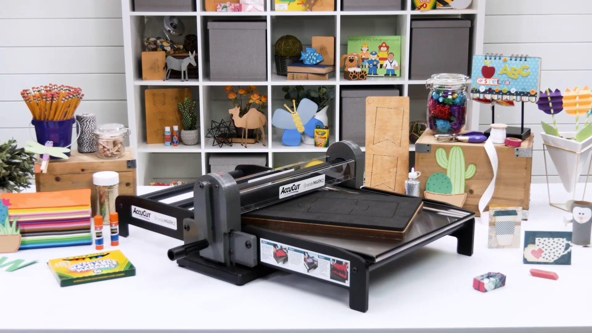 Description The AccuCut GrandeMark 2 Die-Cutting Machine is the ultimate heavy-duty solution for high-volume shape cutting. Designed for compatibility with GrandeMark and many competitive dies, this robust system allows you to cut multiple layers of paper, felt, and fabric with ease, making it a staple for classrooms and professional workspaces.Features High-Volume Productivity: Industrial-strength design built for heavy-duty, repetitive use in classrooms, libraries, and professional settings Multi-Layer Cutting: Effortlessly cuts through multiple layers of various materials, including paper, cardstock, felt, foam, leather, and fabric Universal Compatibility: Versatile system designed to work seamlessly with AccuCut GrandeMark dies and many competitive die brands User-Friendly Operation: Features an easy-to-turn manual roller handle that provides smooth, consistent pressure without the need for electricity Wide Cutting Surface: Accommodates a variety of die sizes and shapes, allowing for larger projects and creative flexibility Built to Last: Constructed with a focus on long-term durability and minimal maintenance for high-traffic environments. Includes: 1 AccuCut GrandeMark 2 Die-Cutting Machine 1 Standard Cutting Mat 1 Instruction Guide / User Manual