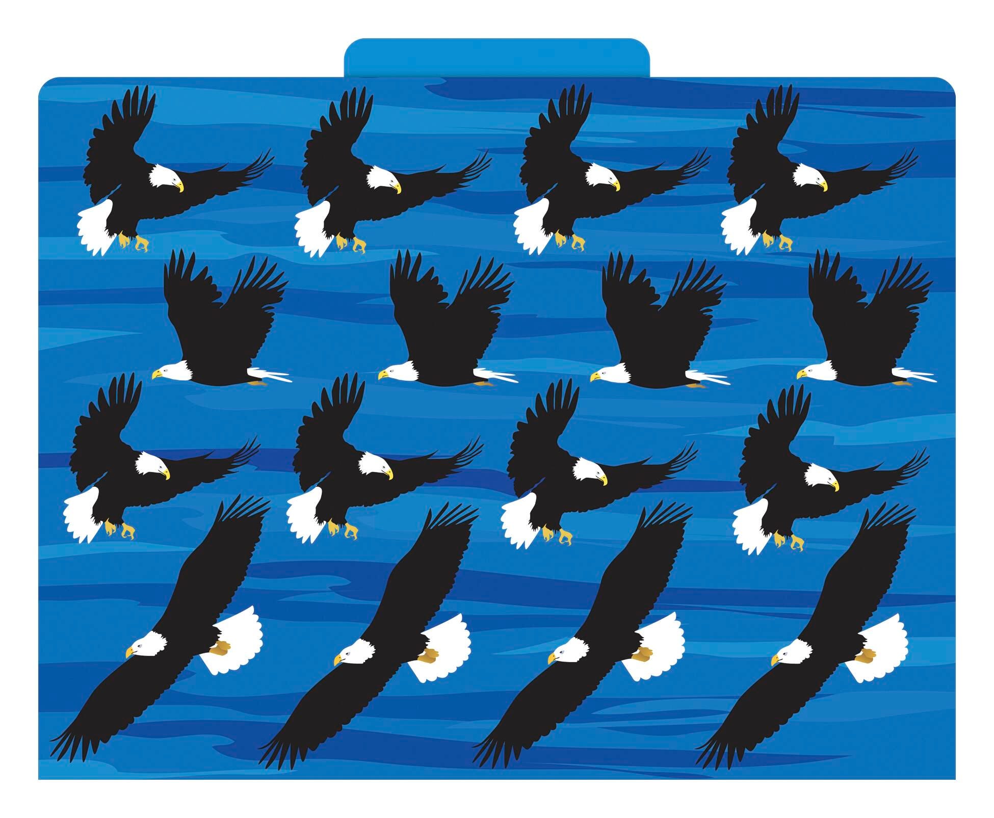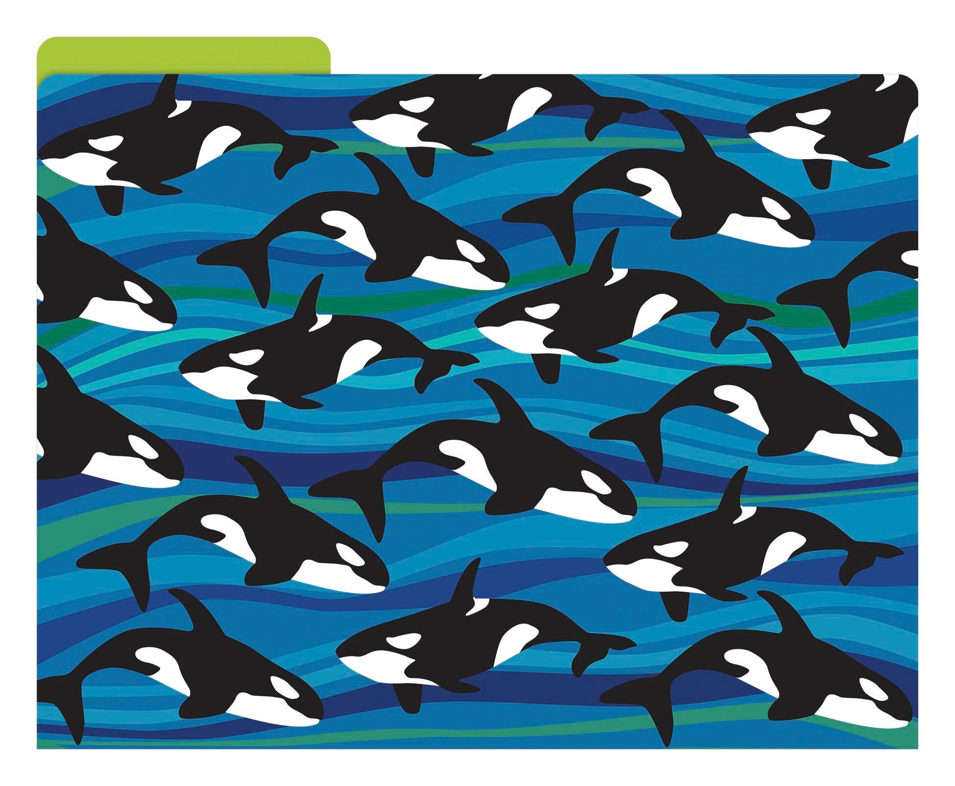 Our new beautiful Sea & Sky Letter-Sized File Folders are an affordable way to organize your office, classroom, and home with style and flair. Package includes 12 file folders with three each of four beautiful designs. The first set of three folders has orca whales on the outside of the folder and a lime green interior that features smaller designs of orca whales. The second set of three folders has playful otters on the outside and the inside features vibrant sea anemones and clam shells. The third set of three folders has American Bald Eagles on the outside and the inside features feathers. The fourth set of three folders has colorful sockeye salmon on the outside of the folder and the inside features salmon on a hot pink background. The folders are 1/3 tabbed and fully reversible.