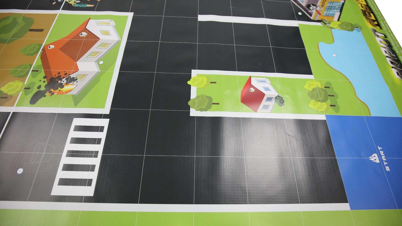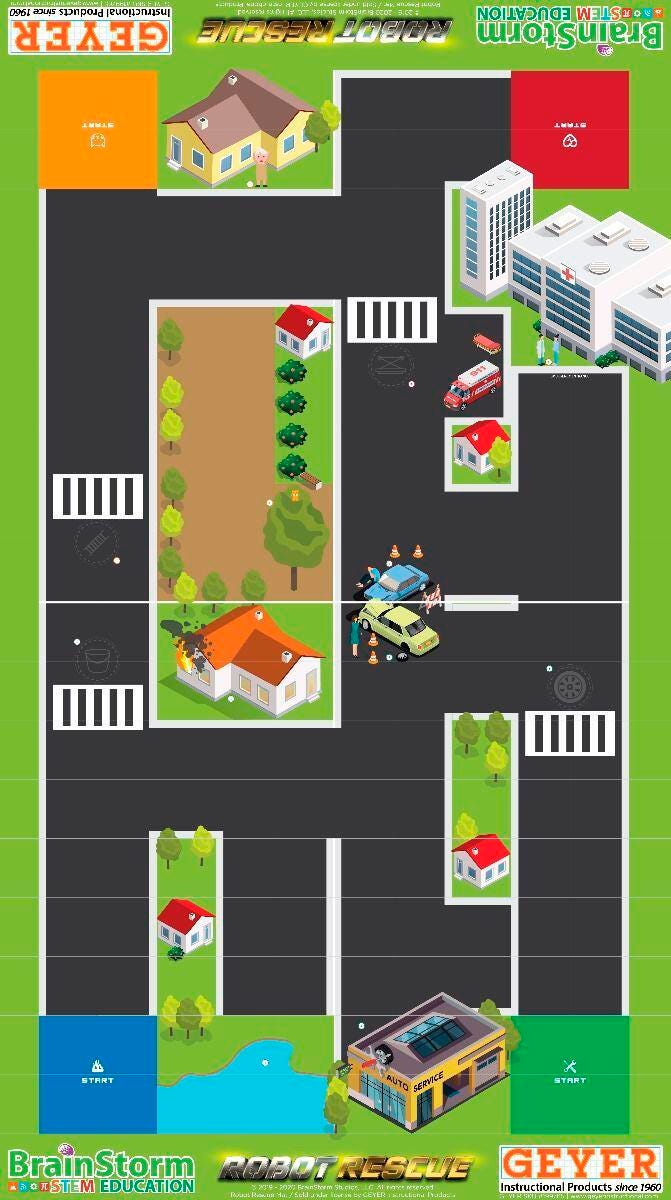 Use your programming skills to save the day and become a hero! This mat provides a variety of challenges and is perfect for students looking for fun and challenging activities. Easy to use, engaging and educational Robotics activities. Multiple challenges mean hours and hours of fun hands-on lessons. Perfect for all skill levels. From beginners to more experienced students, these mats provide challenges that keep everyone excited and learning. Works with a wide variety of robots, including: LEGO Mindstorm EV3, LEGO Spike Prime, VEX IQ, Dash & Dot, Cue, mBot, Edison, UBTECH, etc. Mats can accommodate up to 4 robots / groups of students at a time making them perfect for large or small classes. Made of durable 13oz matte vinyl material that is designed to last. Mats roll up for convenient and easy storage when not in use. 80” x 44.75" size fits on standard FLL competition tables or can be used on the floor. Teaches programming, basic navigation, engineering, sensor use, line detection, object manipulation and more. Comes with 8 game pieces.Features