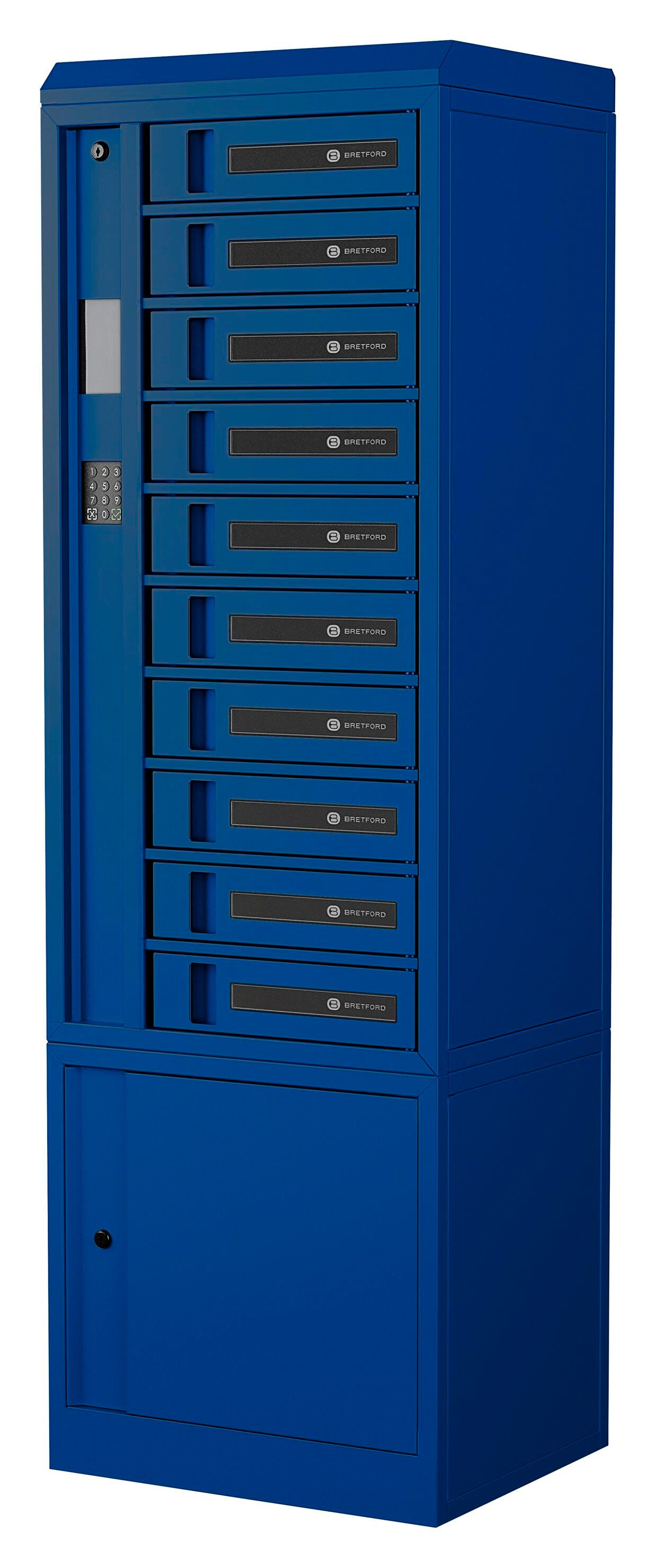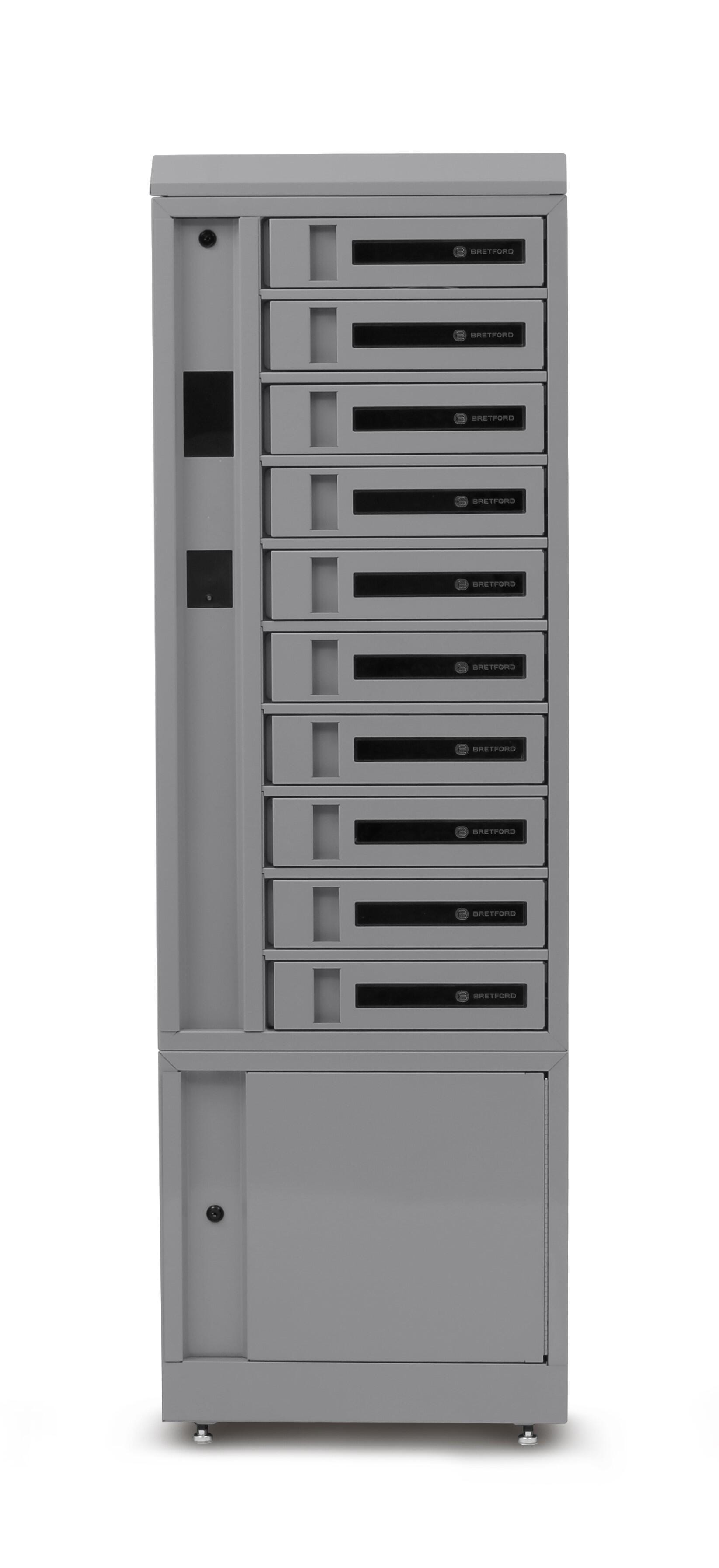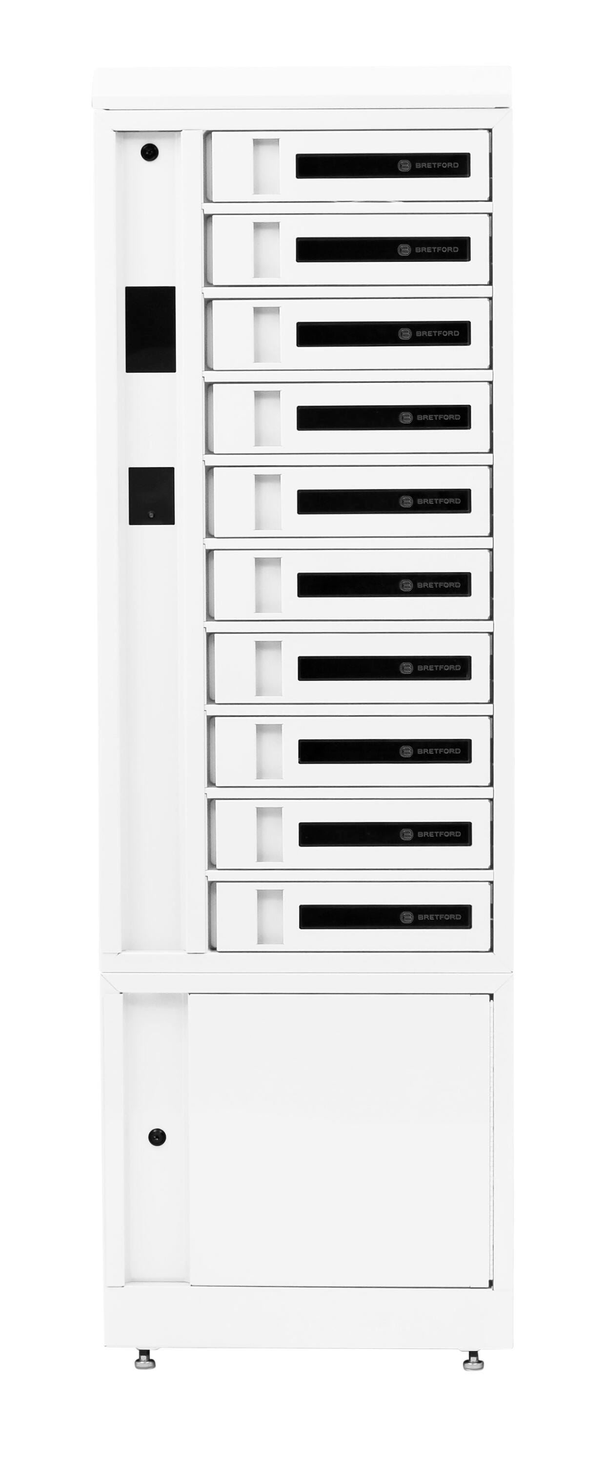 This 10-bay mobile device locker from Bretford combines charging in every bay with keyless access control. All centrally managed from the cloud with Bretford Connect®.Features