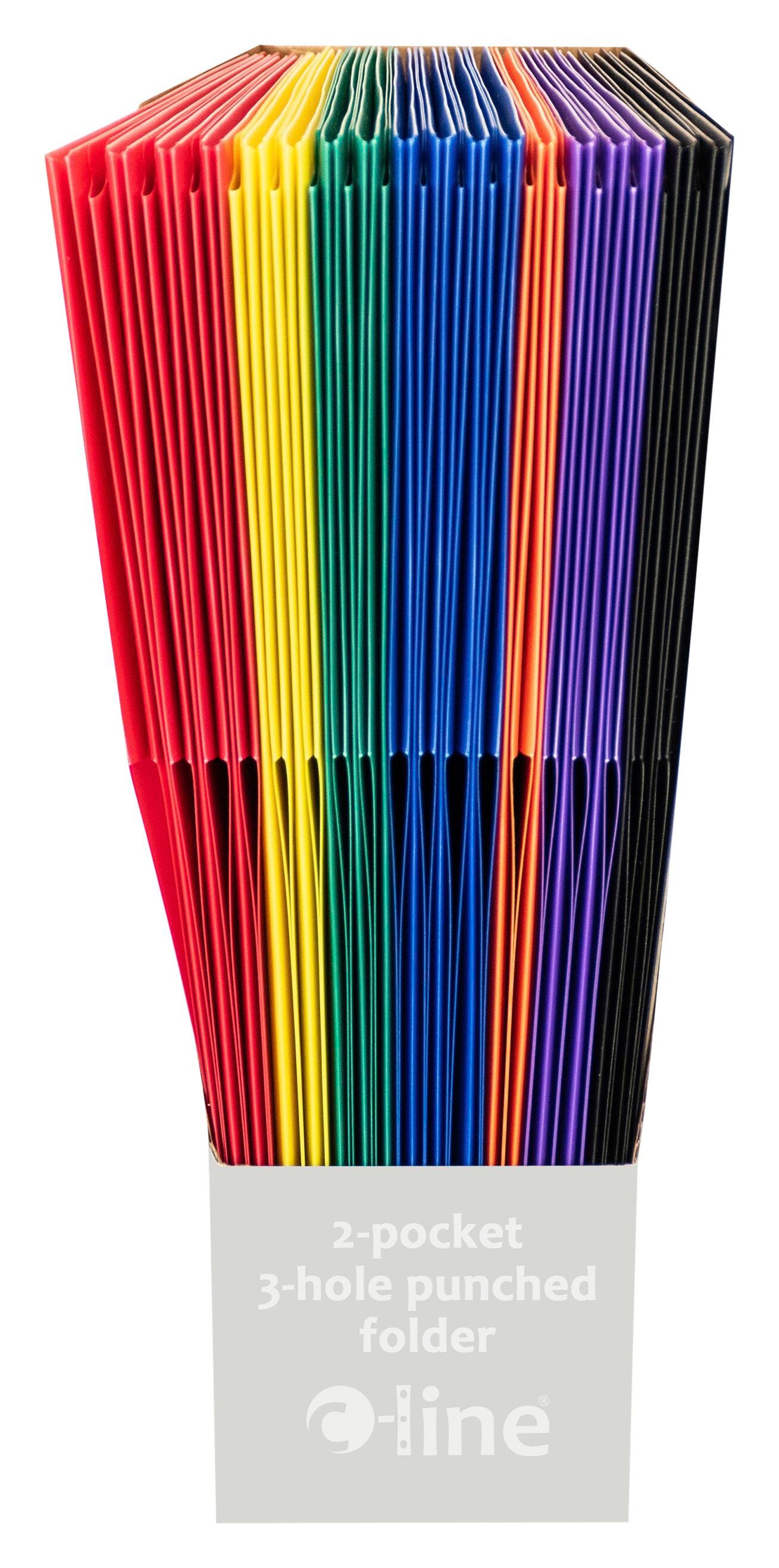 C-Line 2-Pocket Poly Folder, 3 Hole Punched, Assorted Colors