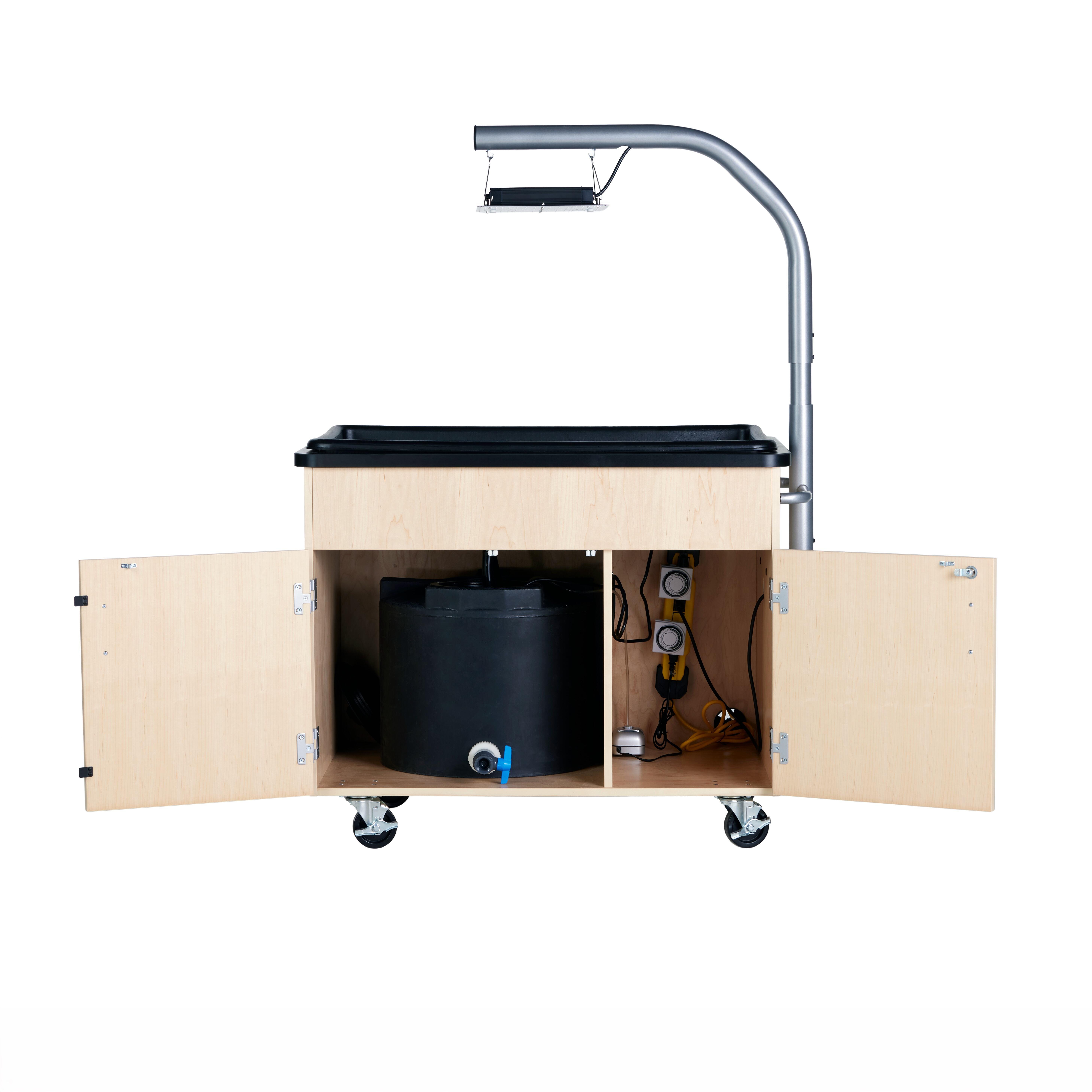 - SEFA-compliant and MAS Certified Green maple wood Hydroponic unit comes with 4 lockable casters for easy transportation and open-access sides for groupwork