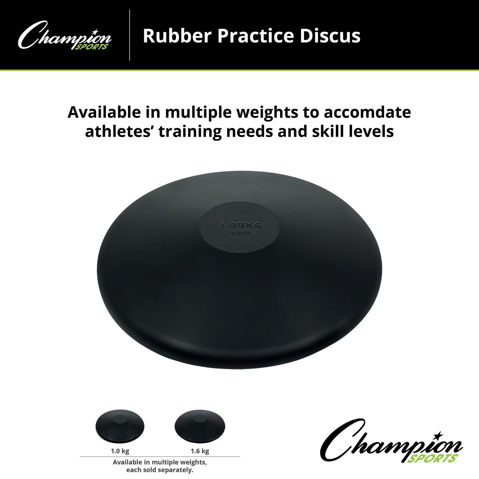 Champion Sports Women's Black Rubber Discus of 1 kg is ideal for practice. Sold individually.Features