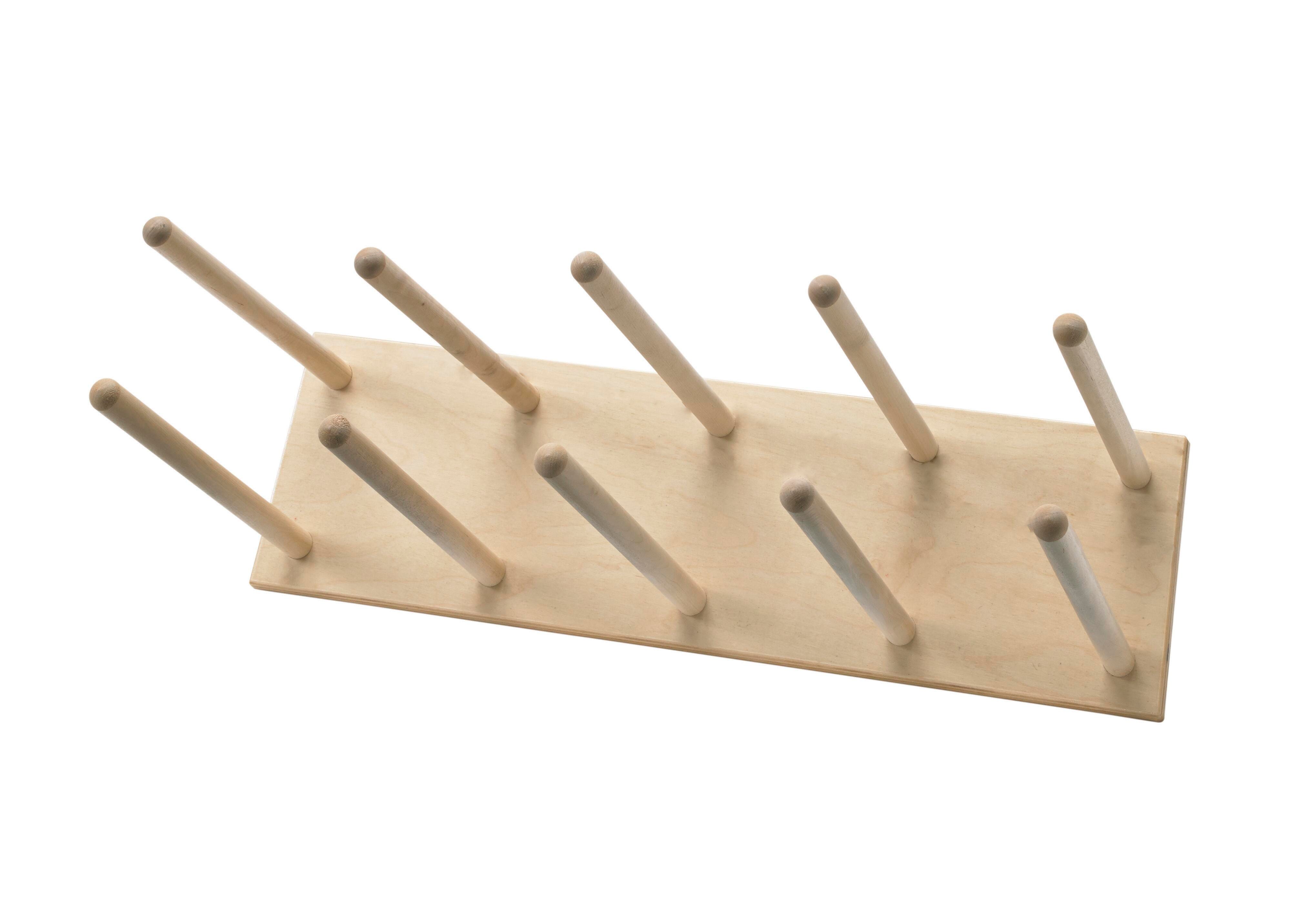 The Childcraft® Puppet Stand is a compact and convenient storage solution for up to 10 hand puppets. Featuring 10 vertical sticks, this wooden stand allows children to easily access and display their favorite puppets while keeping play spaces neat and organized. The smooth, rounded edges prevent fabric snags, ensuring gentle care for soft puppets. Made from durable birch plywood, this puppet holder has a natural finish that can be stained, painted, or left as is for a classic look. Ideal for early childhood classrooms, daycare centers, libraries, and home playrooms, this space-saving storage solution encourages dramatic play, storytelling, and imaginative learning. This storage unit measures 19-3/4 W x 5-3/4 D x 11-9/16 H inches.Features