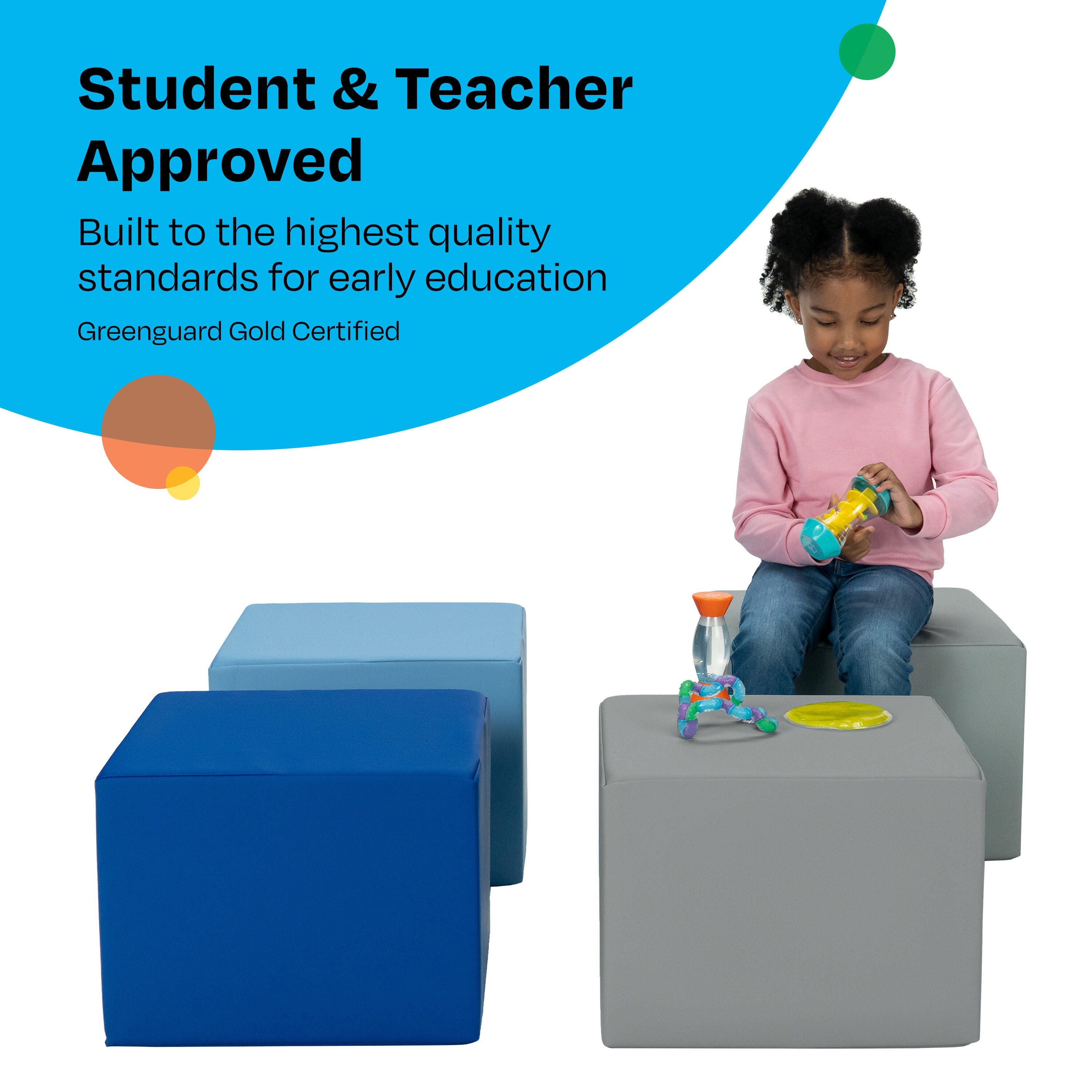 This Childcraft® Square Ottoman is durable, comfortable, colorful, and stylish. Use the versatile seating to create a comfy space for learning and playing in the classroom or childcare setting. The square seating cushion is made of dense, sturdy foam and a soft, durable polyurethane material. A durable exterior allows for easy cleaning; just wipe clean with a cloth and soapy water. The Greenguard Gold Certification ensures furniture items are low emitting and meet or exceed the industry standards for classroom use.