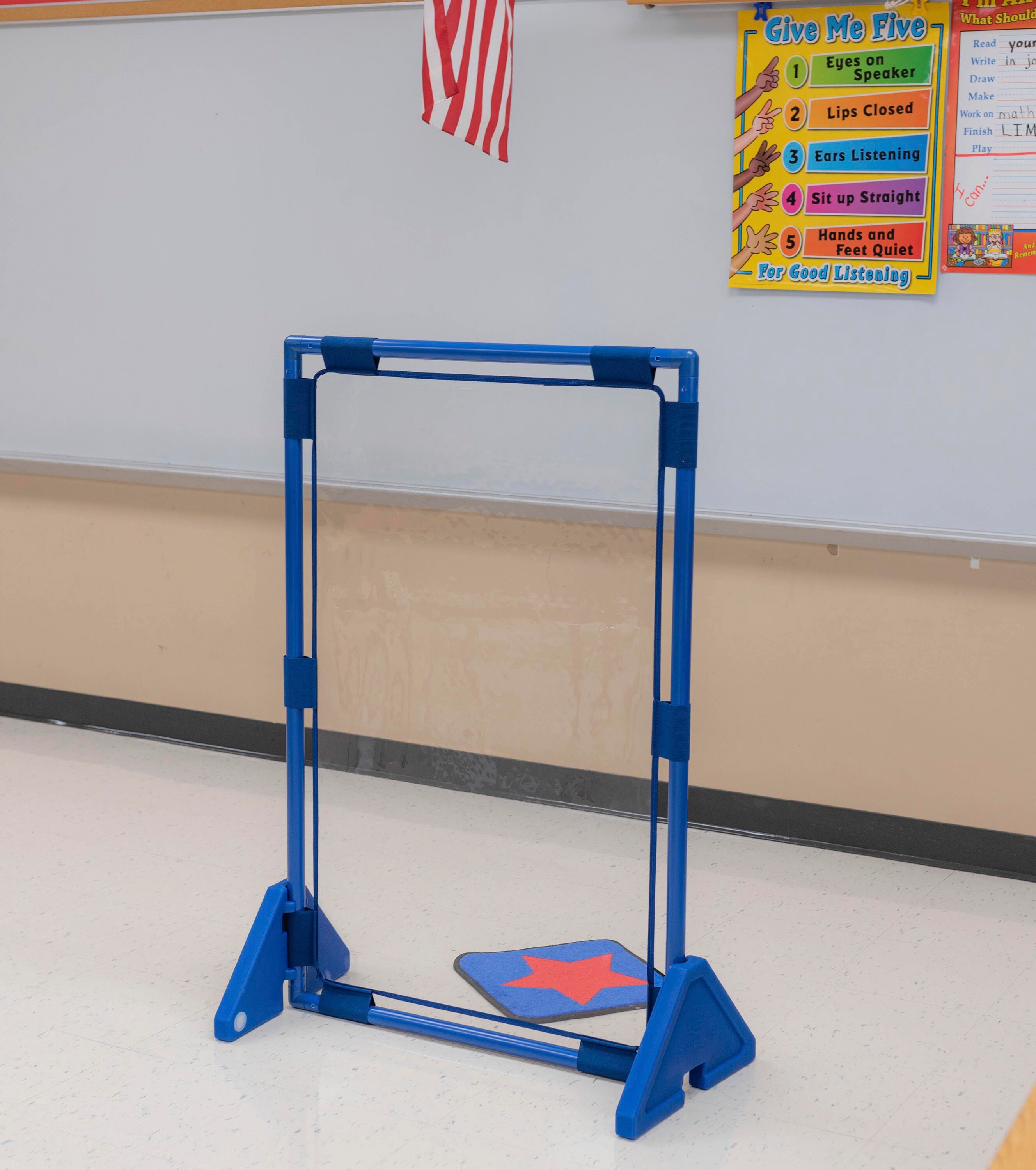 Create a safe play space in your childcare space with this PlayPanel, a clear room divider that doesn't break your line of sight.