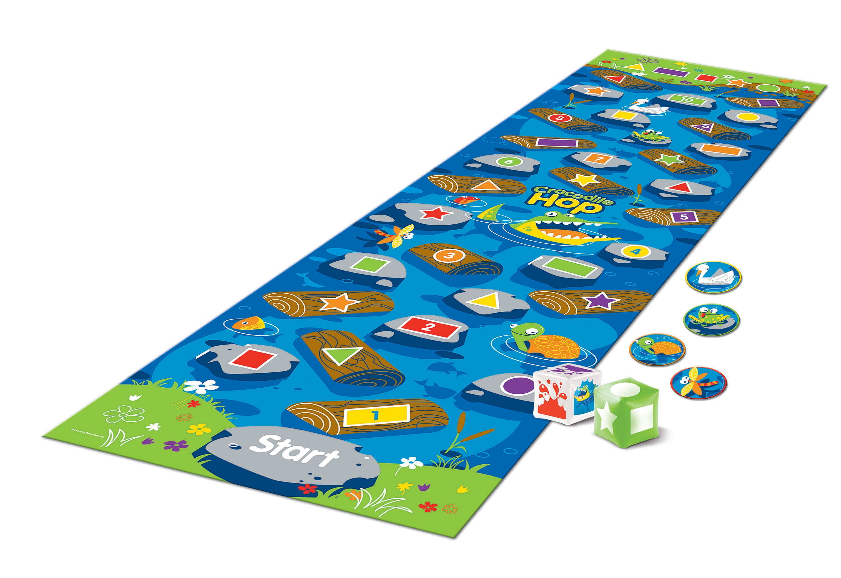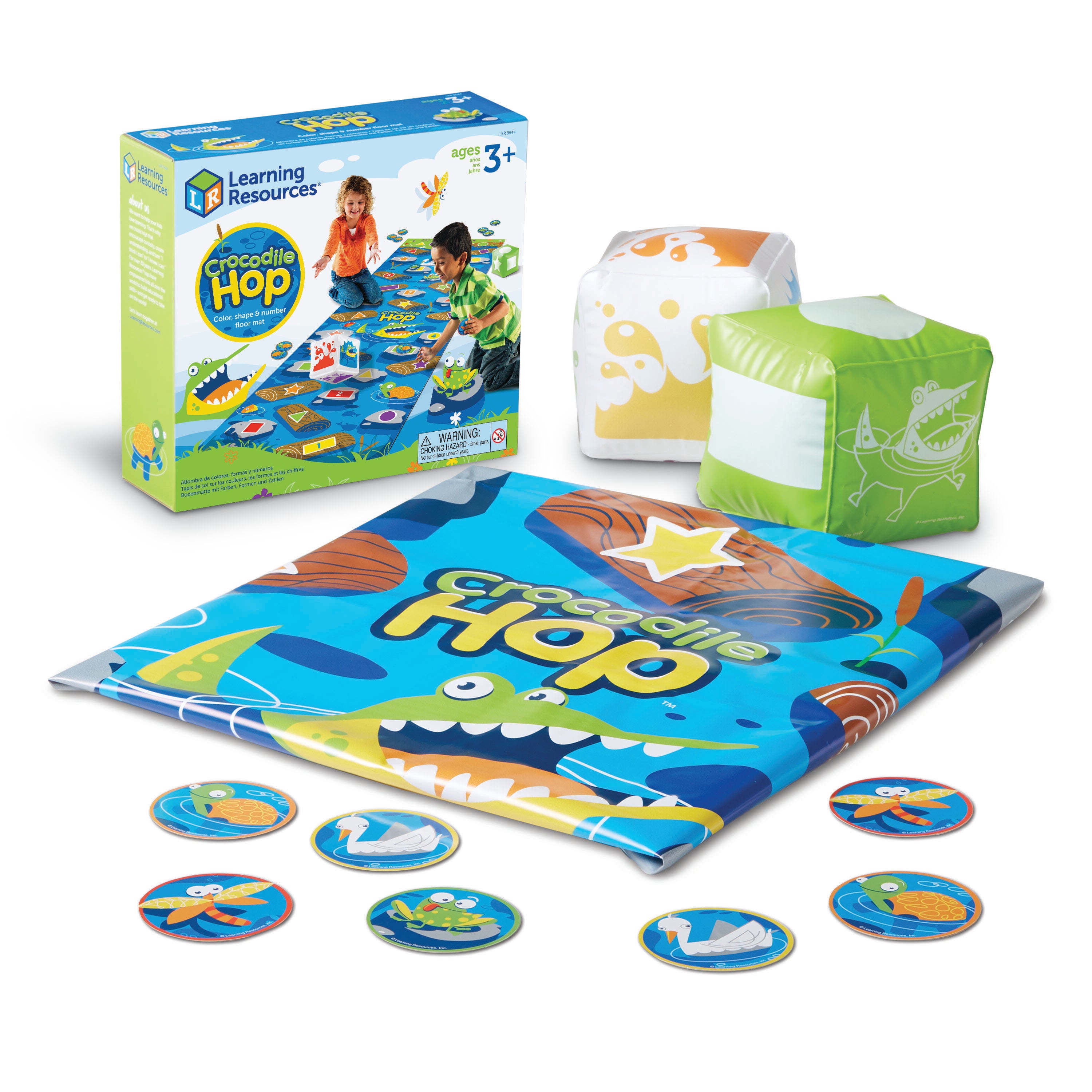Description Learning Resources will help engage students minds and muscles with the Hop Floor Game! Hop down the river or use markers to learn colors, shapes, numbers, counting (1-10), problem solving, and how to follow simple directions. For individual, small-group, or whole-class play. Includes colorful vinyl floor mat (100 x 30 inches), 2 inflatable cubes (5 inches), 40 animal markers, and activity guide. Designed for ages 5 and up.Features Perfect for playrooms, recreational centers, and early learning spaces Learn colors, shapes, numbers and counting through play Ideal for individual, small-group or whole-class play Keeps children active and learning all at the same time Easy to store away when not in use Includes: 2 Inflatable Cubes, 5 Inches 40 Animal Markers 1 Floor Mat 1 Activity Guide