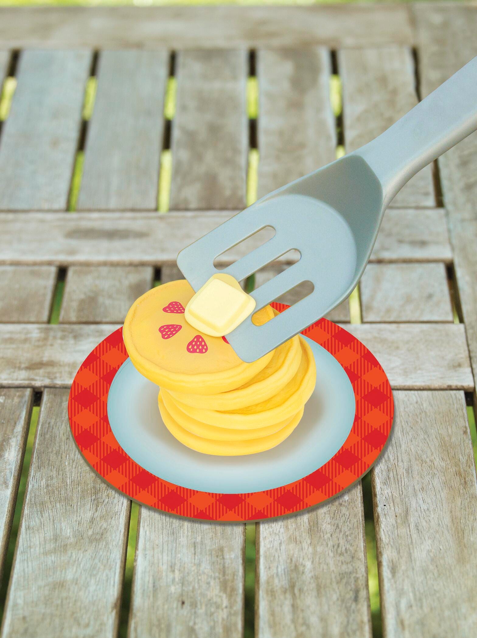 (10) Pancakes in 5 different flavors (2) Pats of butter (2) Plates (2) Spatulas (10) Order cards Griddle game board and instructions