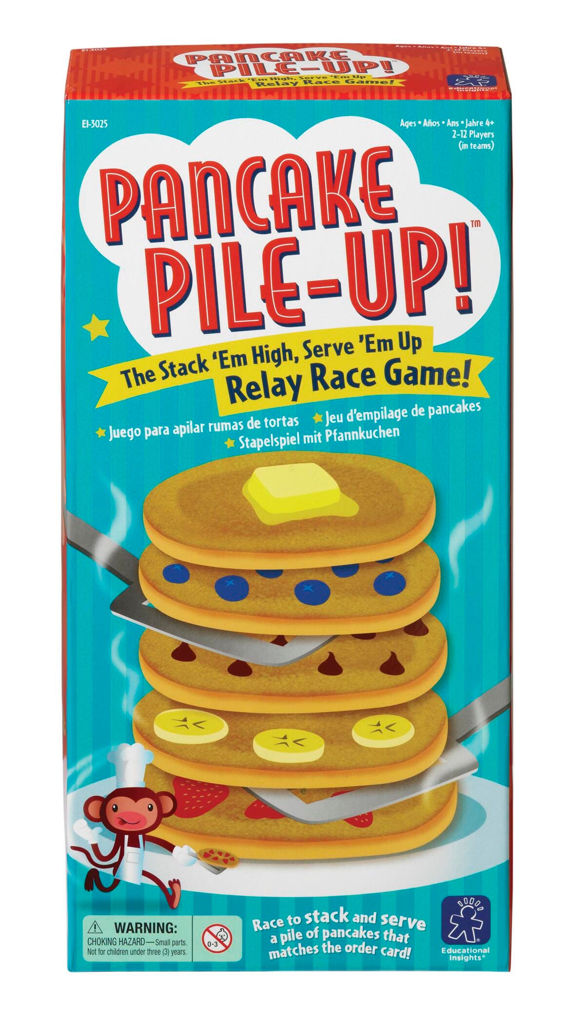Description Educational Insights Pancake Pile-Up Relay Game is designed to foster fine motor skills, motor planning, and cognitive skill development. Encourages social skills from teamwork to being a good sport. Reinforces balance and coordination in students. Sold as a set of 26 pieces.Includes 26 Pieces: