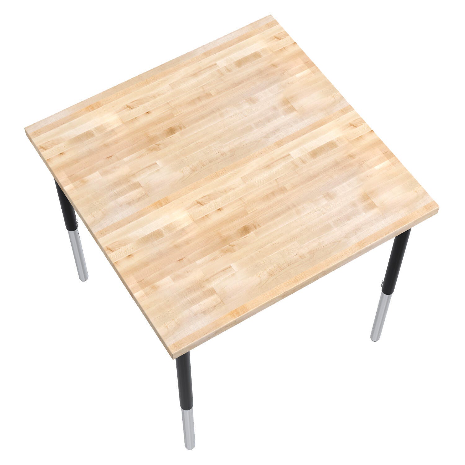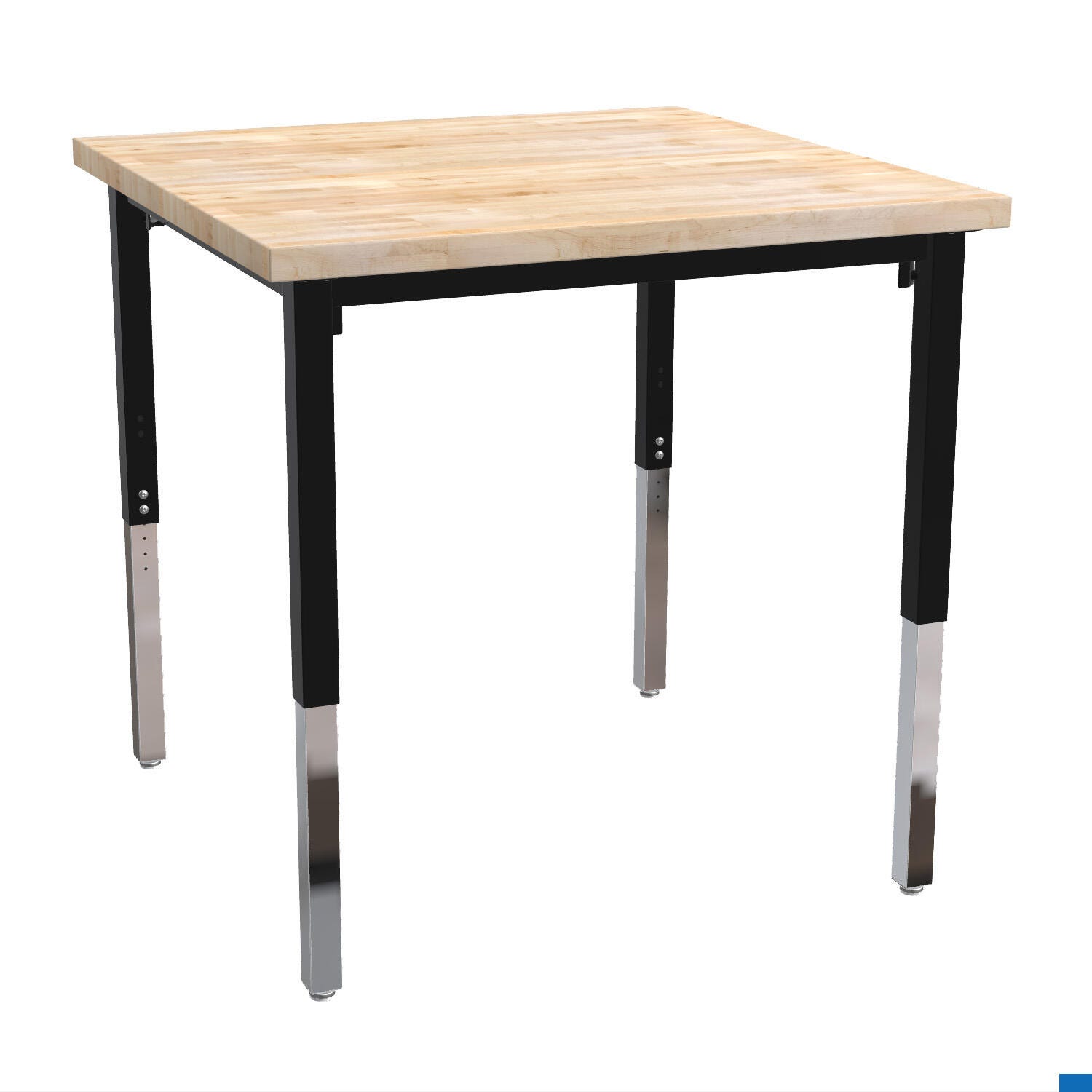This versatile, adjustable, heavy-duty utility table is perfect for project learning environments; especially STEAM/STEM, Art, Science, and Robotic classrooms. The durable butcher block tops are made of 1-1/2 inch finished, solid wood butcher block. Sealed with a polyurethane coating, this top is a perfect addition to our most heavy-duty Vigor Utility Table. The durable unitized frame is a solid steel apron providing the ultimate strength and support for any project. Classroom Select provides high-quality school furniture to meet your needs using only the best of tested and approved components.Features