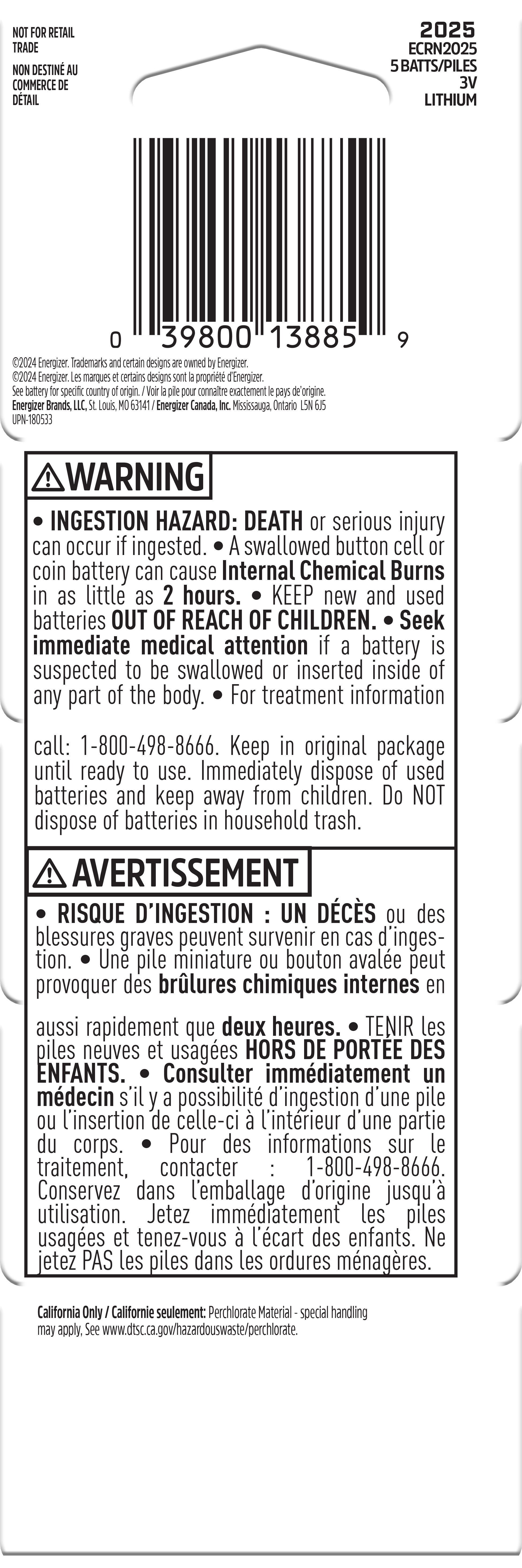 Energizer Industrial 2025 Lithium 3V Battery, Pack of 5