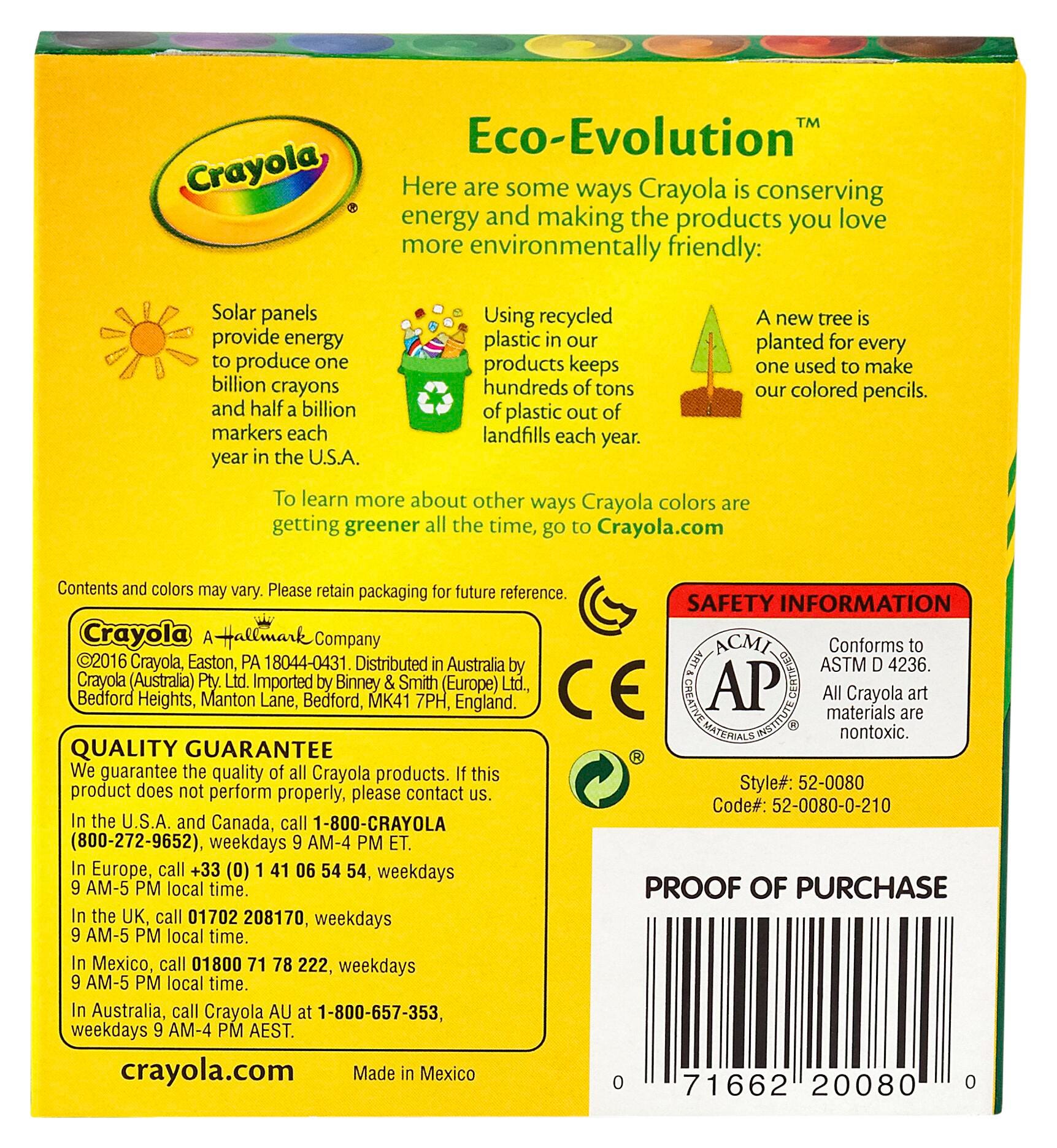 Description The Crayola Large Crayons are specially designed to be more comfortable for small hands. These crayons are designed to provide hours of colorful fun, with bold and true color, a smooth formula, and a durable construction. Each large-size crayon measures 4 x 7/16 inches. This set contains 8 crayons, 1 in each of the following colors: red, orange, yellow, green, blue, violet, brown and black.Features One-of-a-kind wax formula glides smoothly over paper for consistent lines and bold color Variety of colors provide bright and creative self-expression while drawing, coloring, writing, and more Crayons are double-wrapped for additional strength and break-resistance AP certified, non-toxic for safe use in the classroom, childcare center, studio, or home Recommended for ages 3 and up