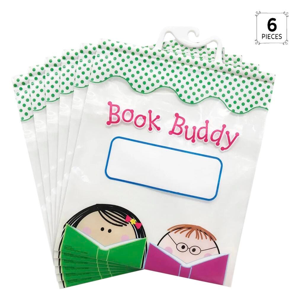- Pack of 6 Book Buddy each features place for a name or label to write at front for use at school, childcare center or home