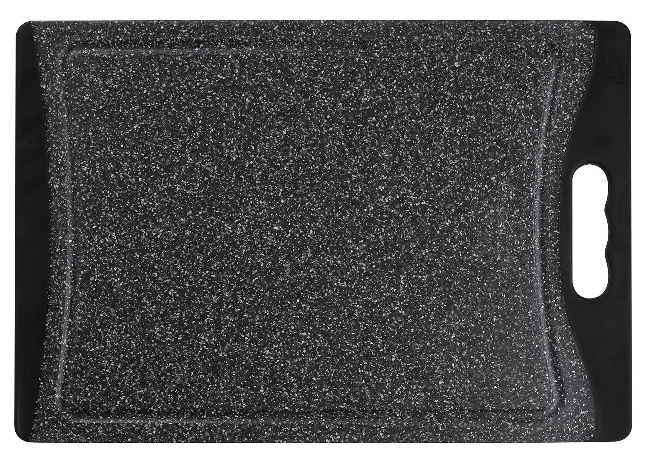 14-inch marbled polymer cutting board designed for all your cutting tasks Expertly crafted to protect countertops and knife edges "Drain away" feature allows juices to drain away from cutting space Nonslip silicone grips for frustration-free prep work Dishwasher safe for convenient cleanup Built to last with lifetime warranty Size: 14" x 9.5" x 0.4"