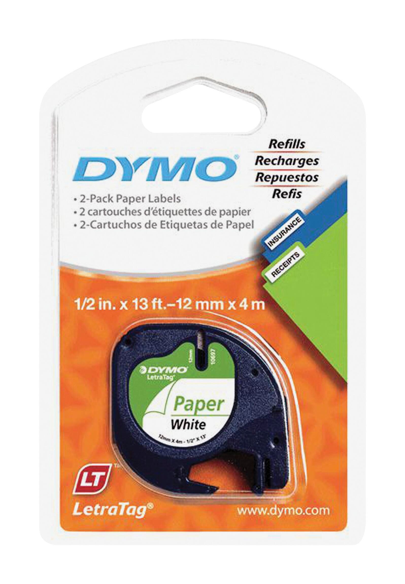 DYMO LetraTag Label Tape, 1/2 Inch x 13 Feet, Paper, White, Pack of 2