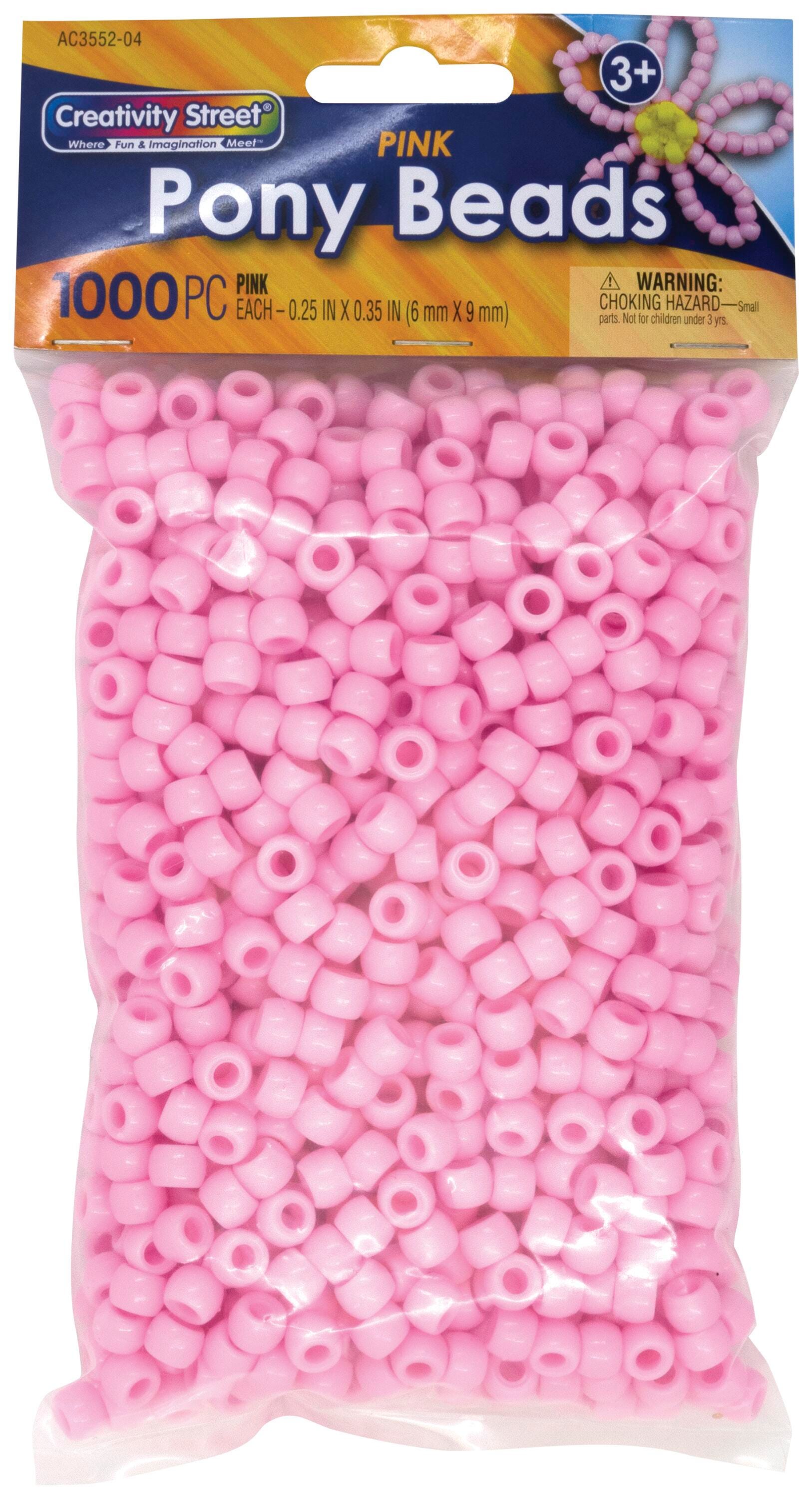 Creativity Street Plastic Pony Beads, Pink, Pack of 1000