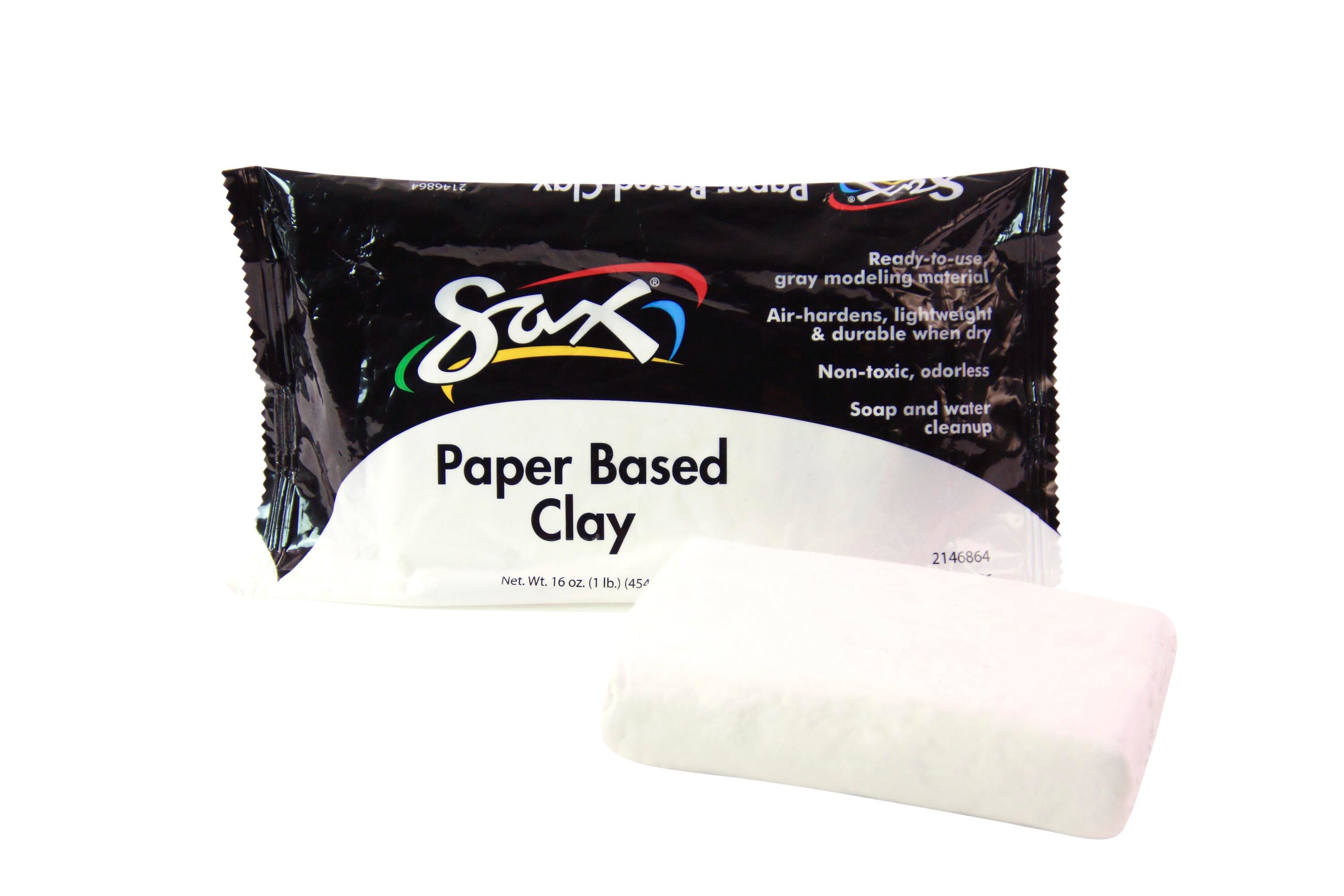 This Paper-Based Clay from Sax contains no silica and easily smooths with the addition of water. This ready-to-use modeling material is lightweight yet air-dries to a hard, durable finish that can be sanded, carved, or painted. It is also excellent when baked to create face masks, bowls, bottles, or other pottery projects. The fine-grained, off-white clay is odorless, easy to clean with soap and water, and will not shrink or crack. It air-dries in about 24 hours depending on the sculpture's thickness. This clay is suitable for both beginners and experienced artists alike. Conforms to ASTM D-4236 standards. Non-toxic.Features