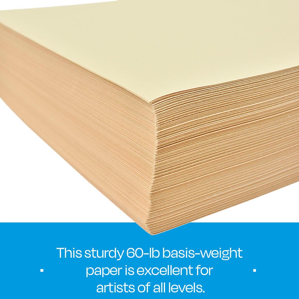 Sax delivers this versatile drawing paper for beginners practicing their skills or experts honing their craft. This popular, cream-colored, rough manila drawing paper is excellent for classroom projects and suitable for most drawing media. This paper has a 60 lb basis weight and comes in a ream of 500 sheets, each measuring 18 x 24 inches.